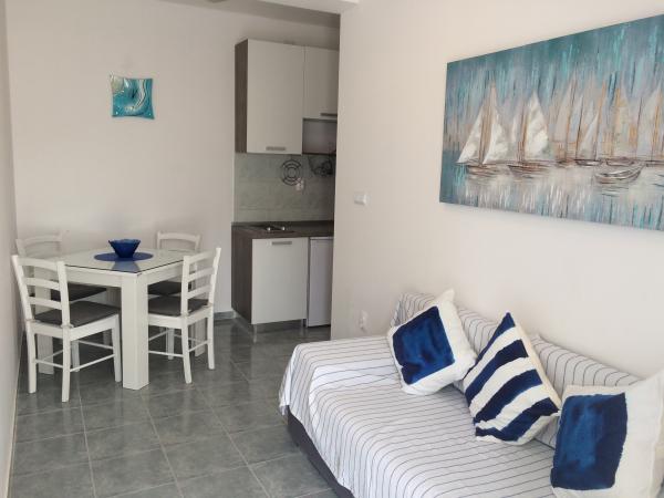 Czysty i sympatyczny apartament bezpośrednio przy morzu. 15minut spacerkiem do centrum. W pobliżu żwirowe jak i kamieniste/betonowe plaże. Polecam.