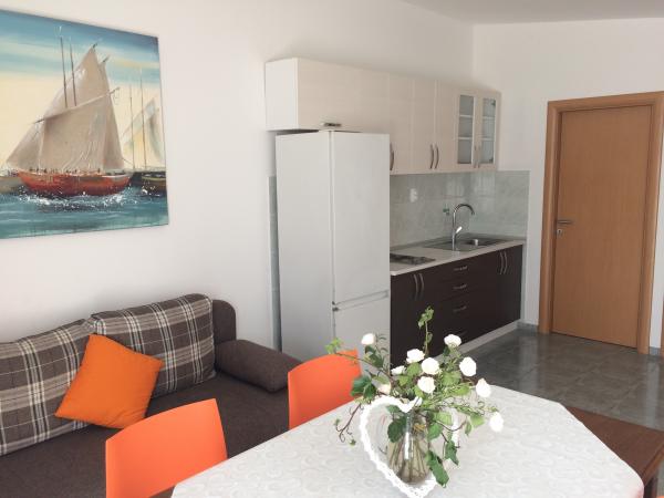 Zakwaterowanie było całkowicie w porządku, wygodne, czyste, nowe meble, klimat. Gospodyni bardzo ładne i solidne. Najlepszym sposobem było pływanie. Morze bezpośrednio w przedniej części mieszkania, przy promenadzie brzegowej i płaskowyżu z betonu o wiele lepszy dostęp do wody, niż na plaży. Ale to jest w zasięgu (około 5 minut w pobliżu małej zatoce). Mały sklep także o 5 min. chodzić. Byliśmy bardzo zadowoleni.