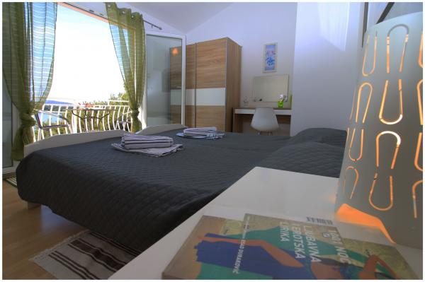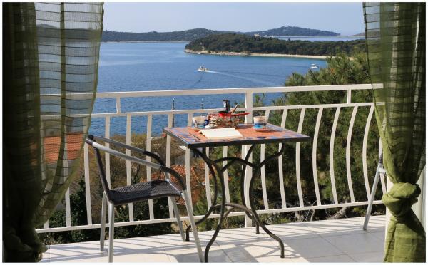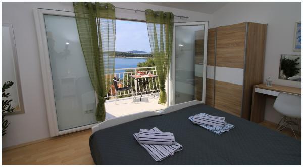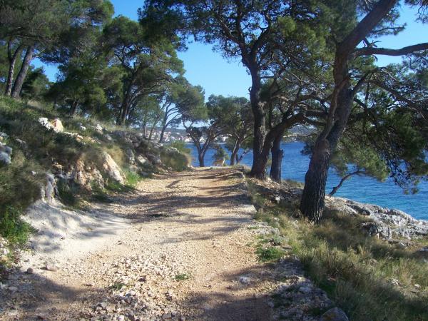 Ładne mieszkanie w pobliżu sosnowego lasu, w cichej uliczce, nadaje się dla dzieci z pięknym widokiem na morze. Plaża znajduje się 5 minut spacerem od apartamentu. Wyspa jest połączona z krótkim mostem z lądem i pokryte 70% lasów. Wokół wyspy, morze jest długa promenada. W pobliżu znajduje się wiele restauracji rybnych o bogatej tradycji. Wspólne wycieczki do Krka i Kornati. Podatek turystyczny, klimatyzacja, internet w cenie.