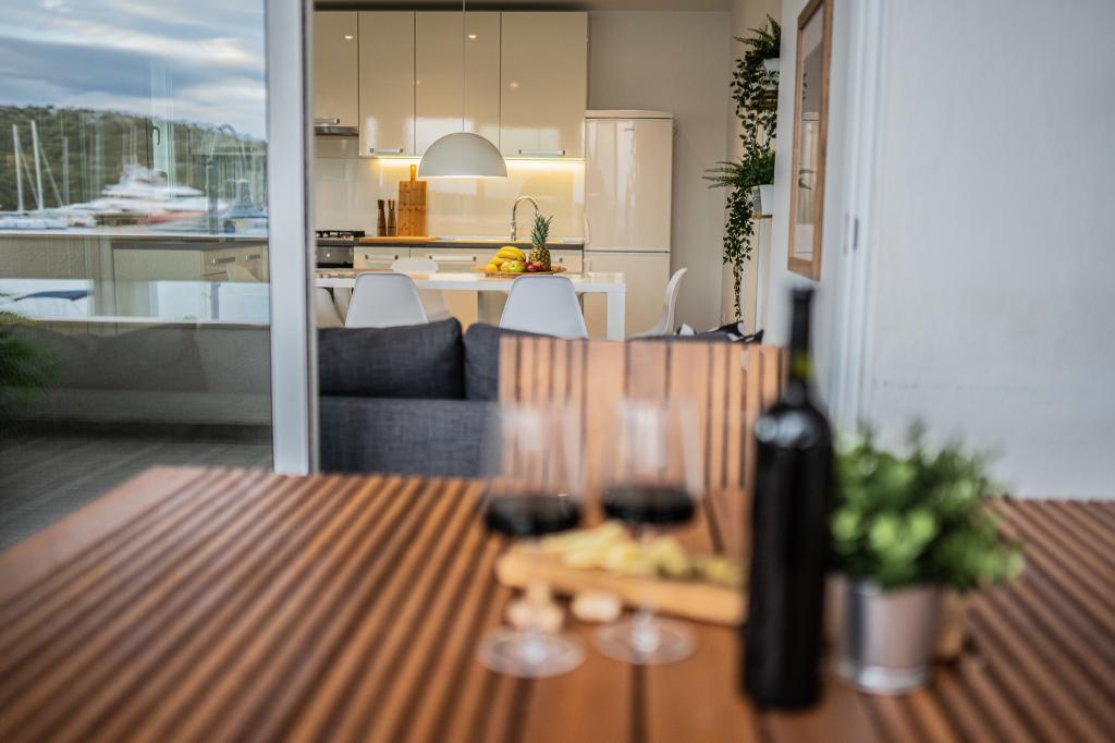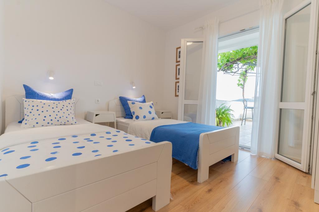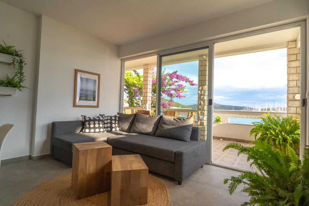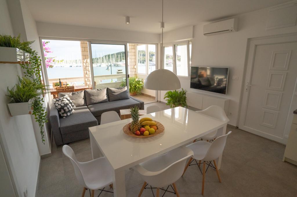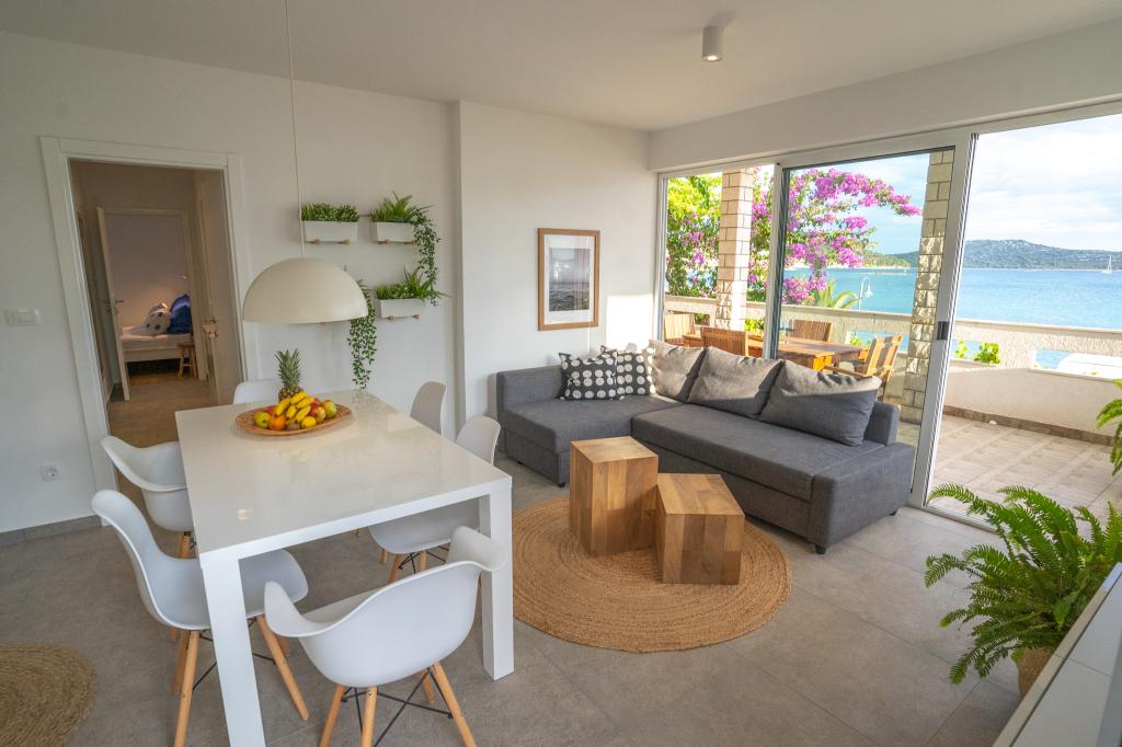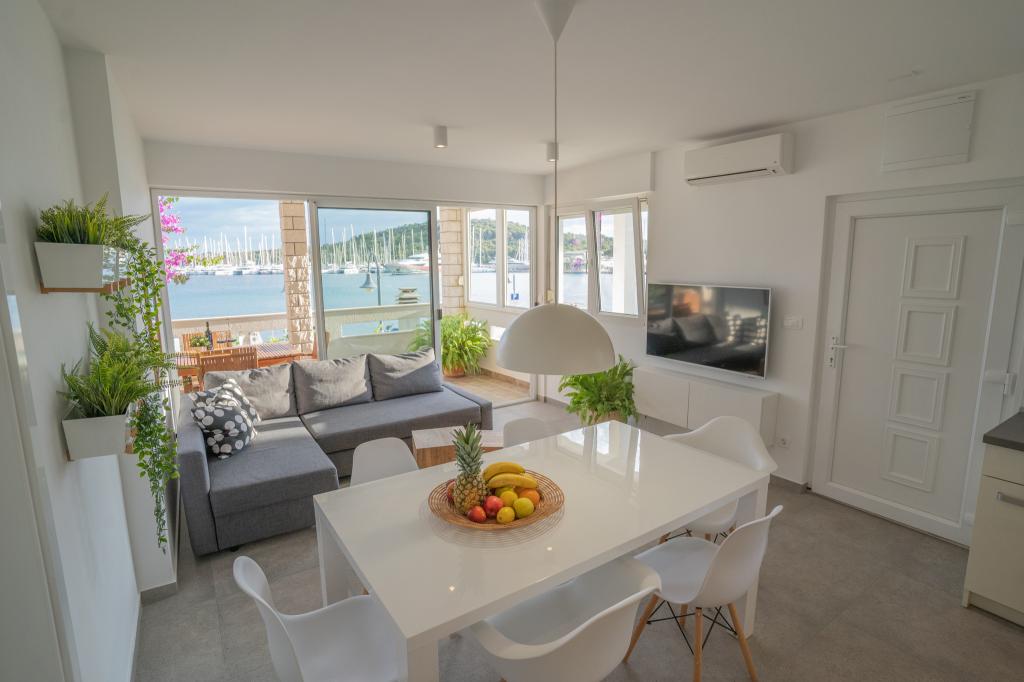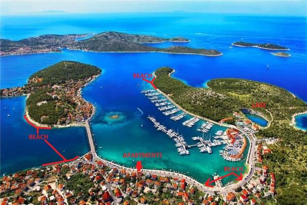 Apartamenty znajdują się w pierwszym rzędzie od morza. Plaża znajduje się 50 metrów od domu, można również popływać przed domem. Każdy apartament posiada oddzielny taras z pięknym widokiem na morze. Prywatny parking dla samochodu. Możliwość wynajęcia miejsc do cumowania dla łodzi do 8 metrów. Wszystkie apartamenty są klimatyzowane. W każdym apartamencie bezpłatne WI-FI. Apartamenty są w pełni wyposażone w naczynia i przybory kuchenne, w każdym apartamencie znajduje się kuchenka mikrofalowa, czajnik, kuchenka, lodówka, telewizor.