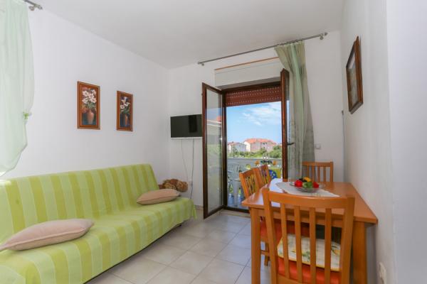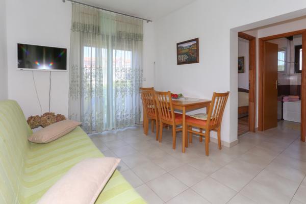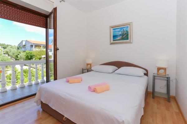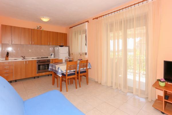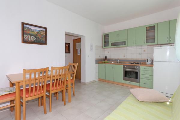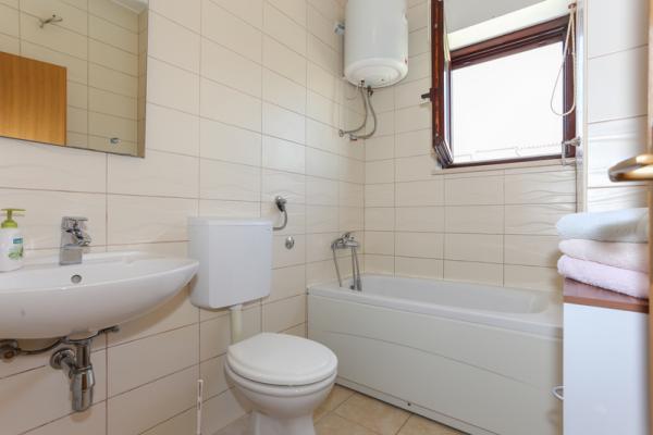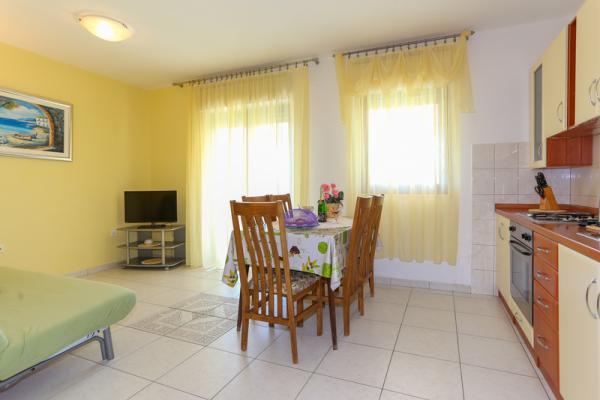 Witamy! Lemo Apartamenty znajdują się 50 m od plaży. Mamy w sumie 4 nowoczesnych apartamentów, z których dwa znajdują się na pierwszym piętrze i 2 na drugim piętrze. Apartamenty A2 1 (max pojemność: 3 osoby) składa się z sypialni z podwójnym łóżkiem i balkonem francuskim, w pełni wyposażoną kuchnię z jadalnią i pokojem dziennym z rozkładaną sofą, łazienką i pięknym tarasem z widokiem na morze. Wszystkie apartamenty są klimatyzowane. Apartament A4 (pojemność maks: 5 osób) 1 składa się z 2 sypialni z podwójnymi łóżkami i balkonem francuskim, w pełni wyposażoną kuchnię z jadalnią i salonem z rozkładaną sofą, łazienką i pięknym tarasem z widokiem na morze. Zabezpieczony parking. Internet bezpłatnie. Możliwość korzystania z prysznica na świeżym powietrzu.
