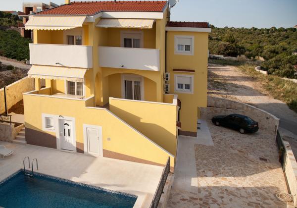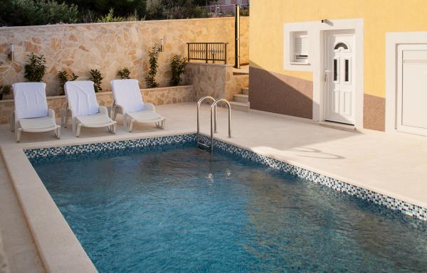 Dom z basenem i trzy nowoczesne apartamenty w Zečevo pobliżu Rogoznica, położony w odległości 30 metrów od plaży. Nieruchomość znajduje się 3 km od Rogoznica i 6 km od Primosten.