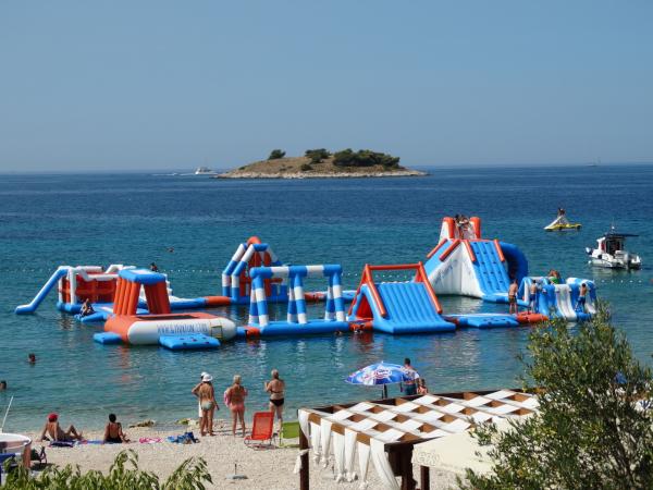 Opłata jest wliczone w cenę. Dokument potwierdzający rezerwację przy rezerwacjiApartament będzie wyposażony w podstawowe udogodnienia. Codziennie można wybrać się na różnorodne wycieczki z Rogoznicy lub Primoštenu, takie jak zwiedzanie Parku Narodowego Krka, rejsy statkiem po archipelagu Kornati, rafting na rzece Cetina, wypożyczalnie rowerów, motorowerów i skuterów elektrycznych. Na naszej plaży znajdują się kawiarnie z widokiem na piękny zachód słońca, a także nowoczesny Aqua Park dla rozrywki najmłodszych. Miłośnicy kolarstwa mają do dyspozycji szeroki wybór tras MTB w okolicy. Ponieważ Rogoznica leży na środku Adriatyku, w pobliżu znajdują się 3 miasta wpisane na listę światowego dziedzictwa UNESCO: Szybenik (30 km), Trogir (20 km) i Split (50 km) ze słynnym Pałacem Dioklecjana i stadionem Poljud, gdzie odbywa się festiwal ULTRA.