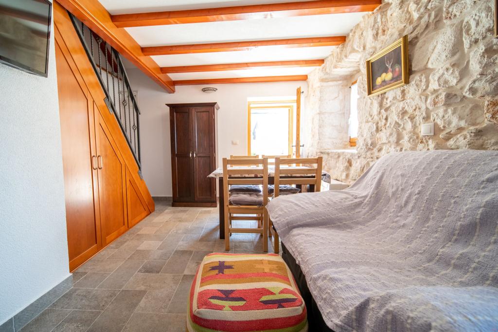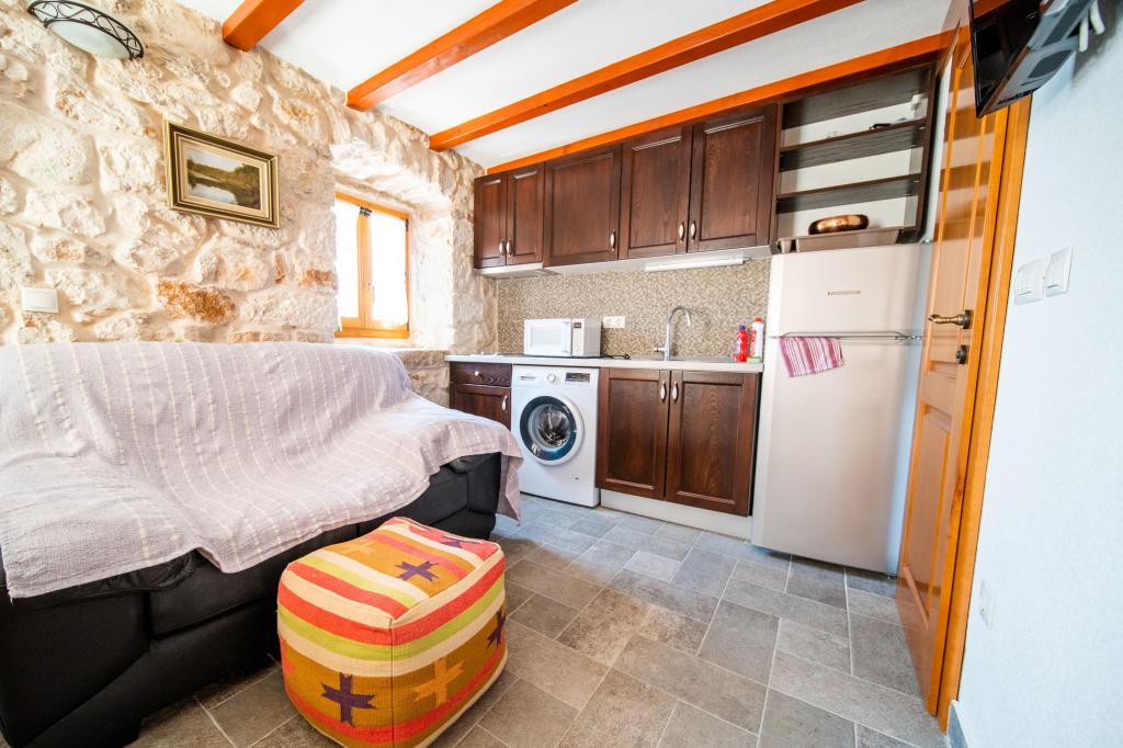 Dwa nowo wyremontowane apartamenty w śródziemnomorskim kamiennym domu w centrum urokliwej Rogoznicy, w sercu Dalmacji, na półwyspie. Zaledwie 50 m od morza i nabrzeża. Dla gości pragnących spędzić wakacje w tradycyjnym śródziemnomorskim kamiennym domu, blisko wszystkich udogodnień Rogoznicy. Duży taras z widokiem na morze.