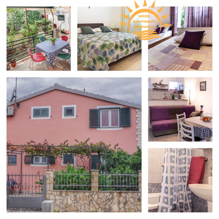 W apartamencie Nives spędziliśmy ostatnie 10 dni czerwca 2021. Jest to duże i wygodne mieszkanie dla 5 osób z dwiema sypialniami , łazienką, salonem i kuchnią. Dodatkowo bardzo duży, wygodny taras zacieniony rosnącymi w ładnym ogrodzie roślinami. W ogrodzie do dyspozycji gril z zadaszoną zewnętrzną kuchnią i dużym stołem . Apartament kompleksowo wyposażony nawet w żelazko i blender do dyspozycji gości. Przemili, gościnni właściciele przywitali nas rakiją i zimnym piwem. Do plaży spacerkiem kilka minut , podobnie jak do miasteczka. Polecamy !