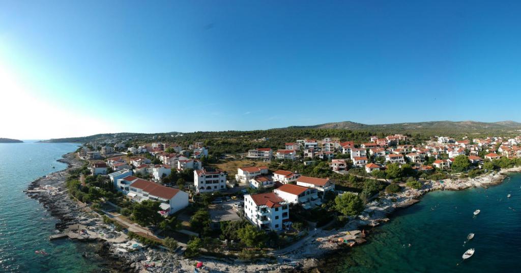 Apartamenty Polić znajdują się 10 metrów od plaży i oferują fascynującą możliwość spędzenia wakacji w prawdziwym kontakcie z naturą. Teren zewnętrzny, podwórko i tarasy są połączone z plażą i morzem. Kierując się na wschód promenadą wzdłuż morza, można dotrzeć do oddalonego o 2 km centrum Rogoznicy. Dom składa się z 6 mieszkań zlokalizowanych na parterze oraz na pierwszym i drugim piętrze. Większe apartamenty mają powierzchnię 55 m2 i składają się z 2 sypialni, salonu, kuchni, toalety i tarasu. przeznaczone są dla 5 osób. Mniejsze apartamenty mają powierzchnię 40m2 i składają się z 1 sypialni oraz przestronnego salonu z kuchnią, toaletą i tarasem i przeznaczone są dla 3 osób. Apartamenty są klimatyzowane i posiadają bezprzewodowy internet. Za domem znajduje się parking dla Państwa samochodów.