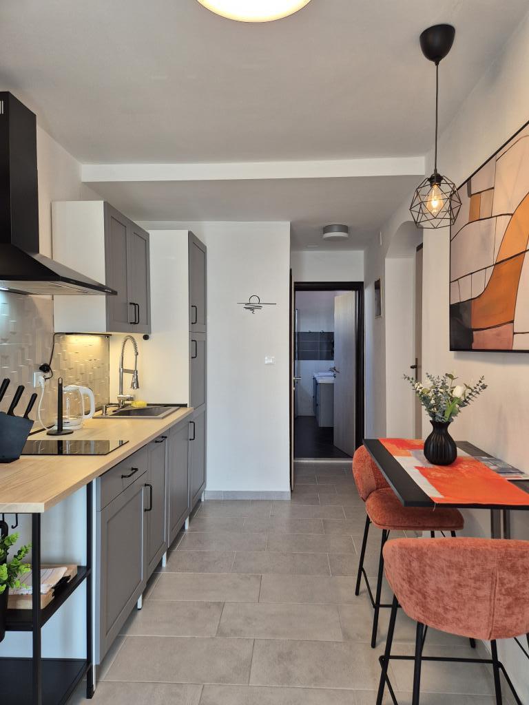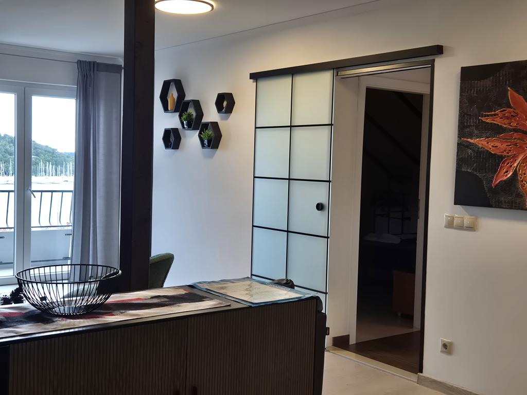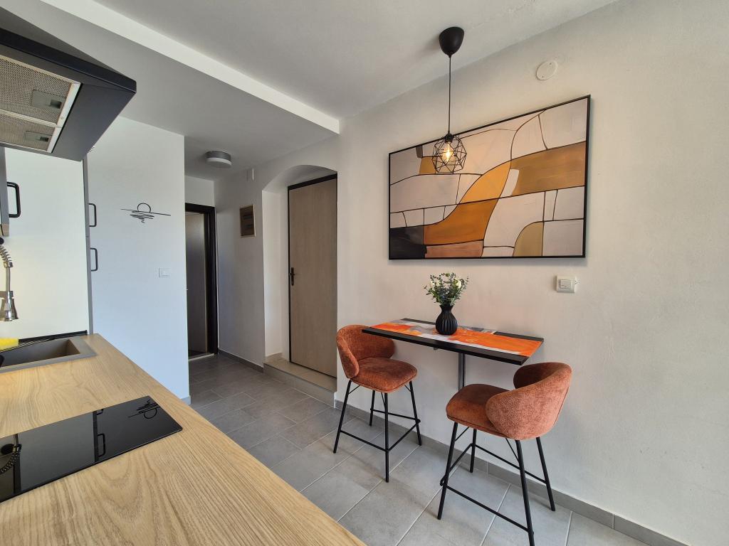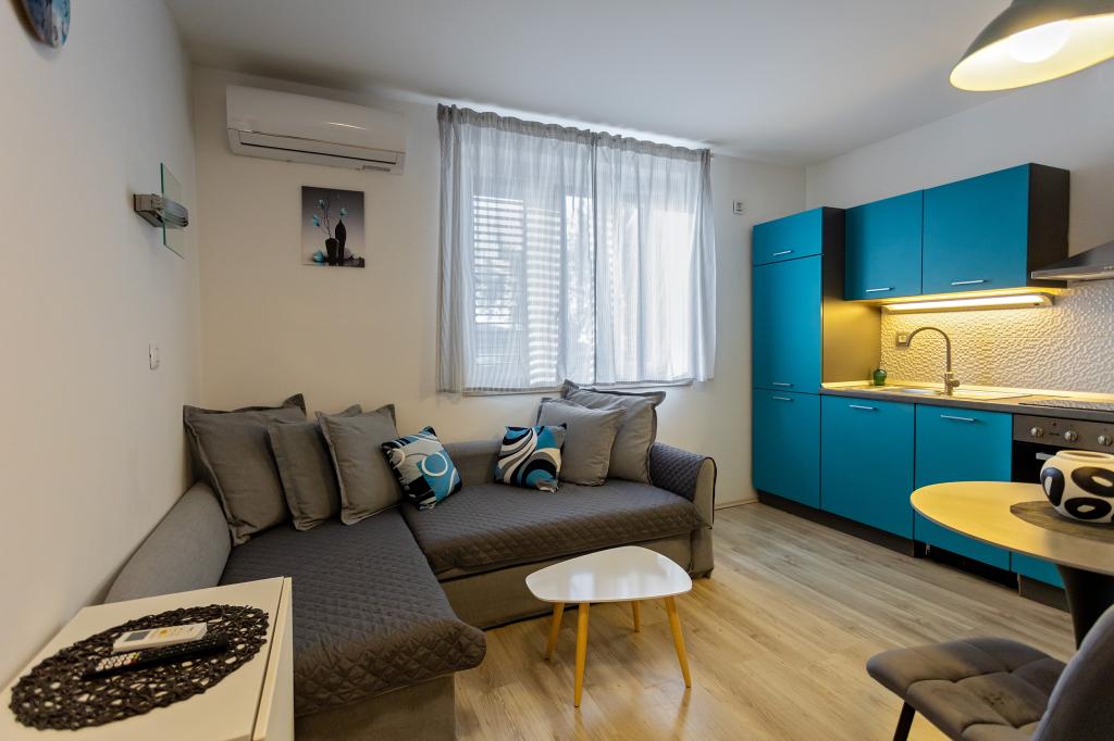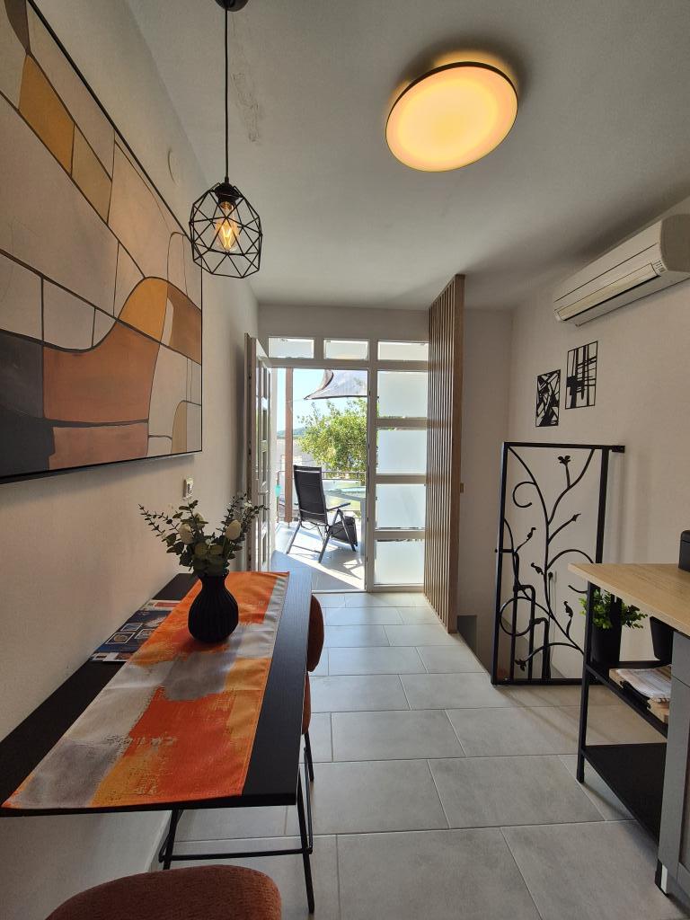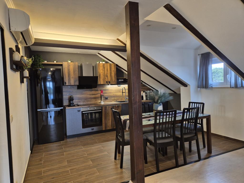 Apartament Skorin mieści się w domu rodzinnym na półwyspie Rogoznica, położonym w centrum miasta. W promieniu 300 m zlokalizowana jest większość udogodnień i usług oferowanych przez Rogoznicę. W budynku znajdują się 4 apartamenty, dzięki czemu każdy może wybrać ten, który najbardziej mu odpowiada. Apartamenty zostały odnowione w 2017, 2022 i 2023 roku. W odległości 50 m od obiektu otwarto nowy teren do ćwiczeń na świeżym powietrzu.