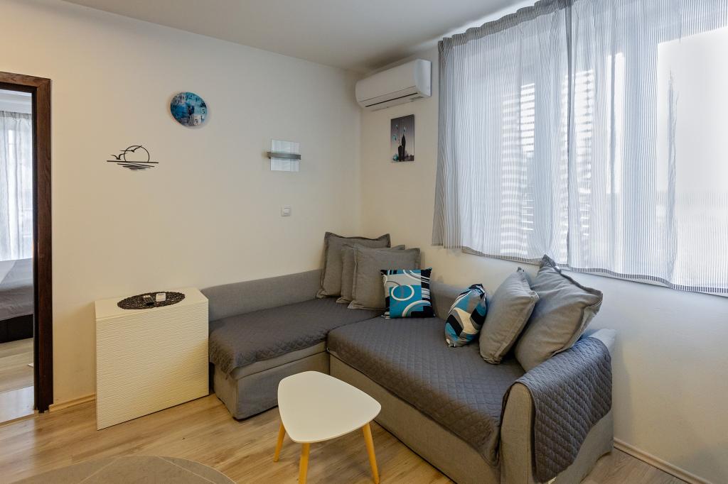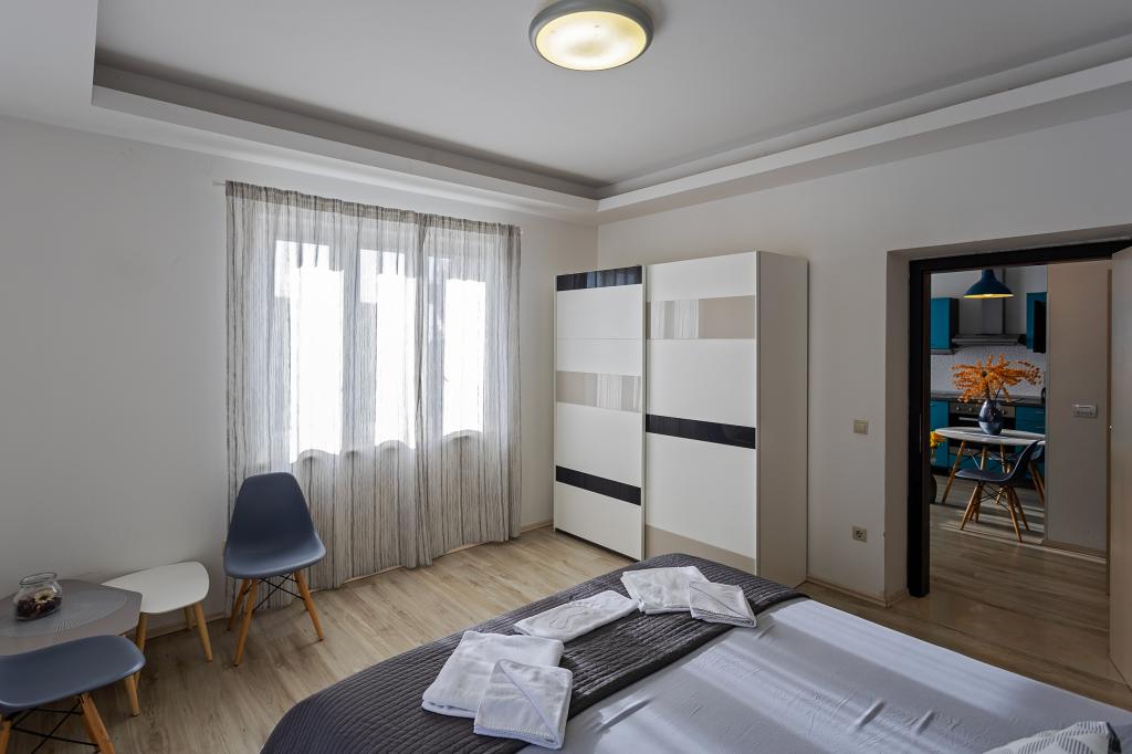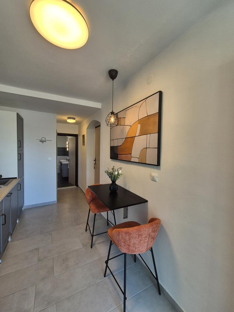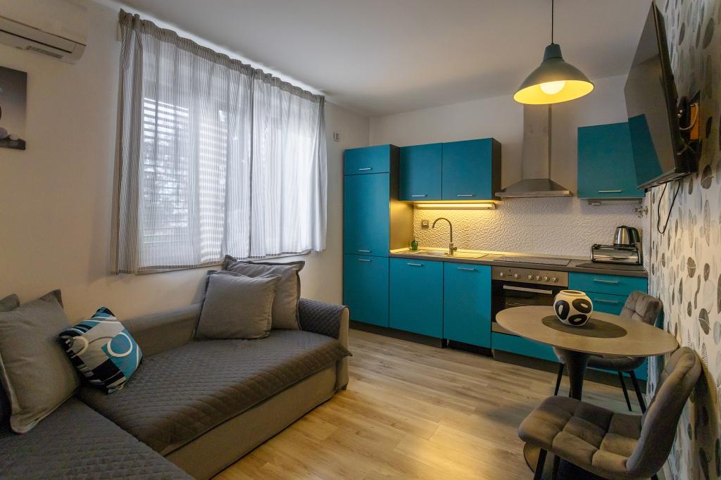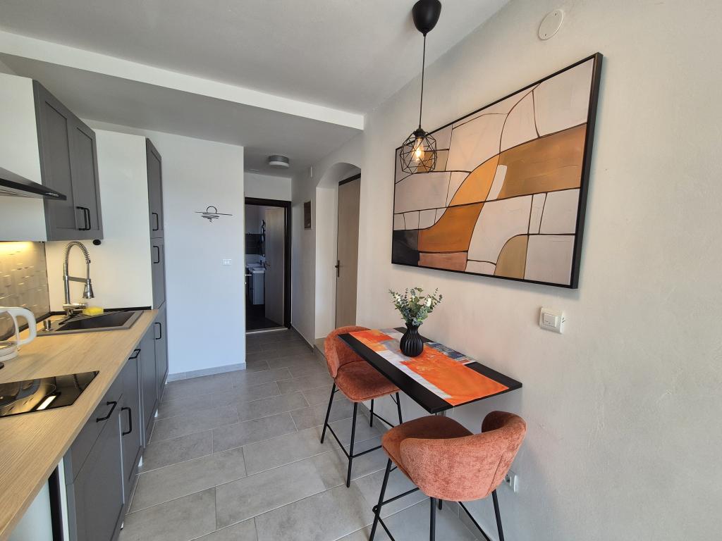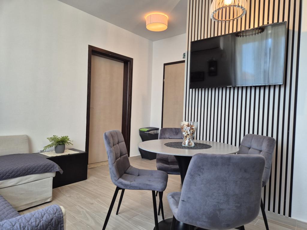 Apartament Skorin mieści się w domu rodzinnym na półwyspie Rogoznica, położonym w centrum miasta. W promieniu 300 m zlokalizowana jest większość udogodnień i usług oferowanych przez Rogoznicę. W budynku znajdują się 4 apartamenty, dzięki czemu każdy może wybrać ten, który najbardziej mu odpowiada. Apartamenty zostały odnowione w 2017, 2022 i 2023 roku. W odległości 50 m od obiektu otwarto nowy teren do ćwiczeń na świeżym powietrzu.