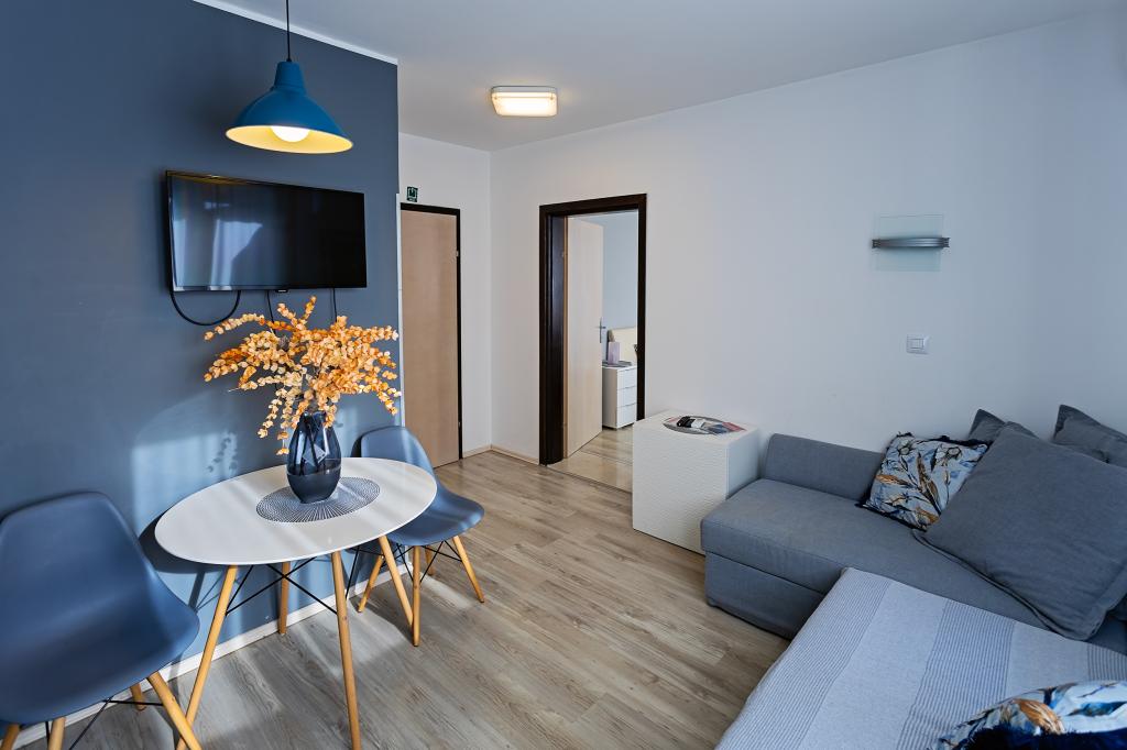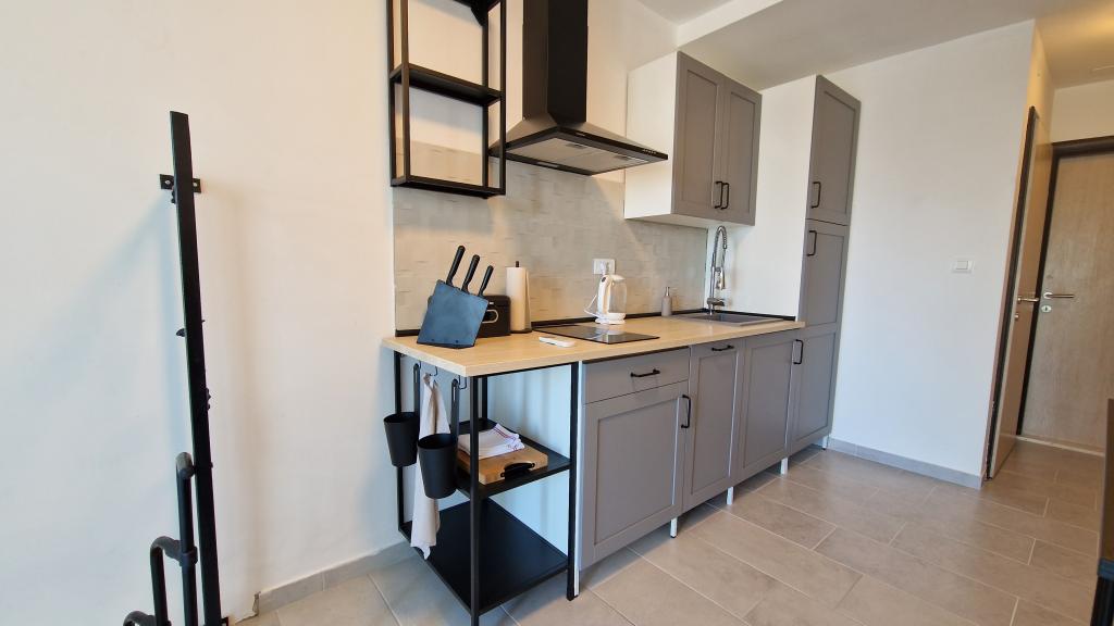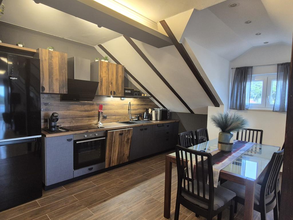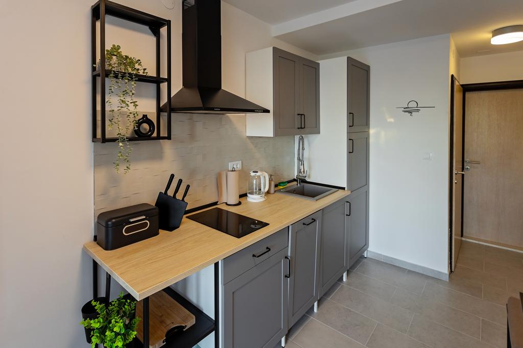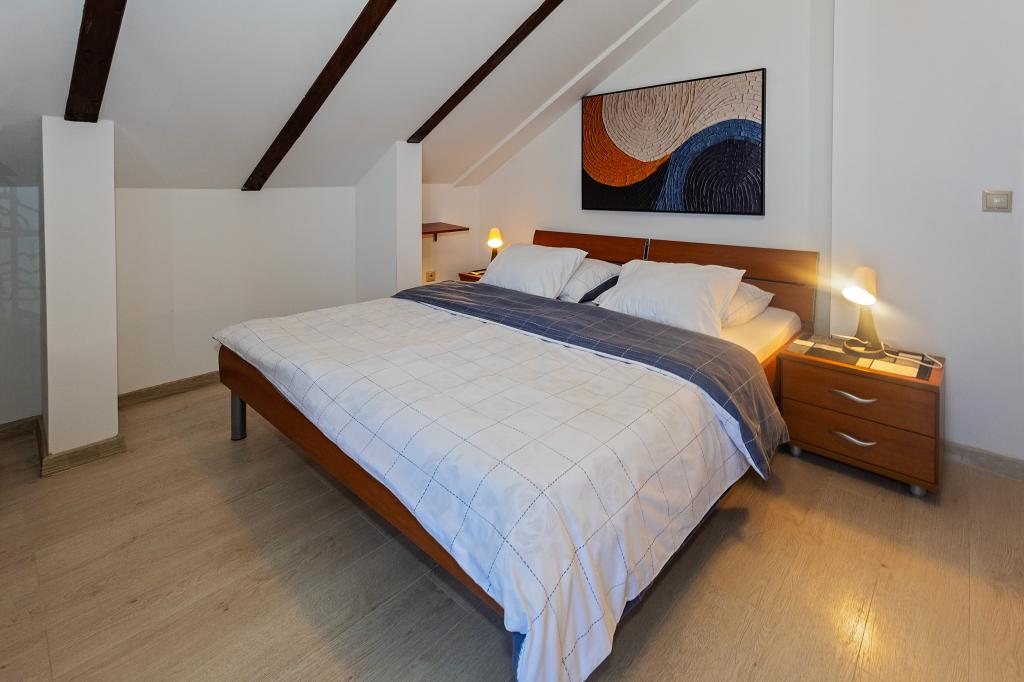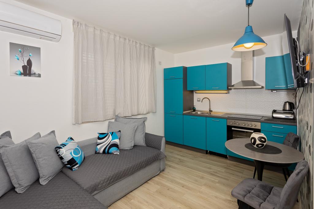 Apartament Skorin mieści się w domu rodzinnym na półwyspie Rogoznica, położonym w centrum miasta. W promieniu 300 m zlokalizowana jest większość udogodnień i usług oferowanych przez Rogoznicę. W budynku znajdują się 4 apartamenty, dzięki czemu każdy może wybrać ten, który najbardziej mu odpowiada. Apartamenty zostały odnowione w 2017, 2022 i 2023 roku. W odległości 50 m od obiektu otwarto nowy teren do ćwiczeń na świeżym powietrzu.