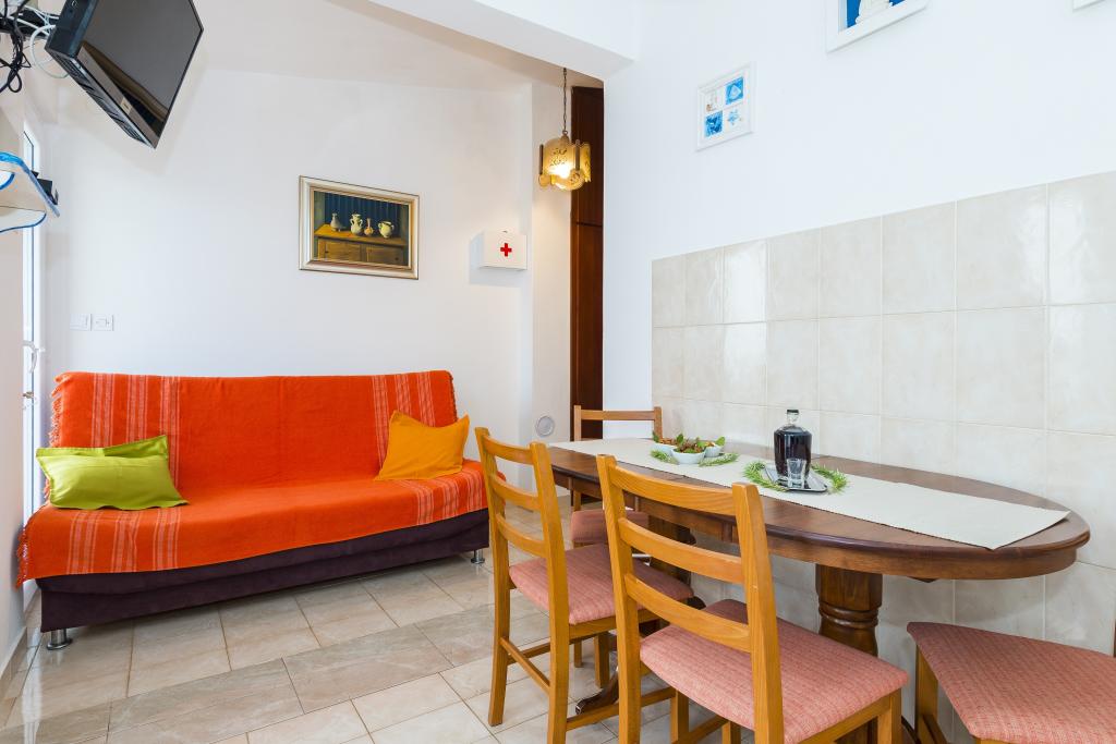 Doskonałe mieszkanie, bardzo miły i pomocny właściciel. Jest wyposażony we wszystko, czego potrzebujemy. Do morza jest zaledwie kilka kroków, widok jest bardzo ładny. Okolica jest spokojna, w centrum jest również dogodna do chodzenia. Ogromny taras było miejsca dla 12 osób wygodnie. jeśli chodzi o stosunek jakości do ceny dobry wybór.