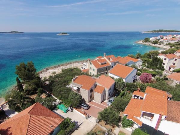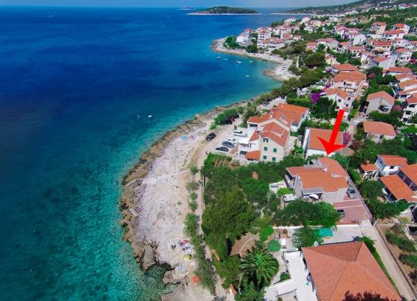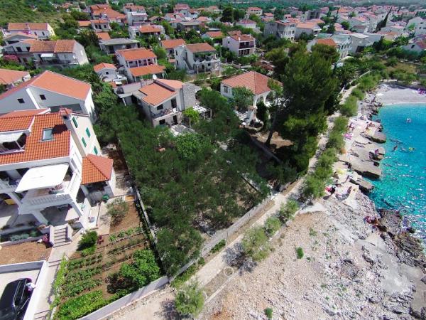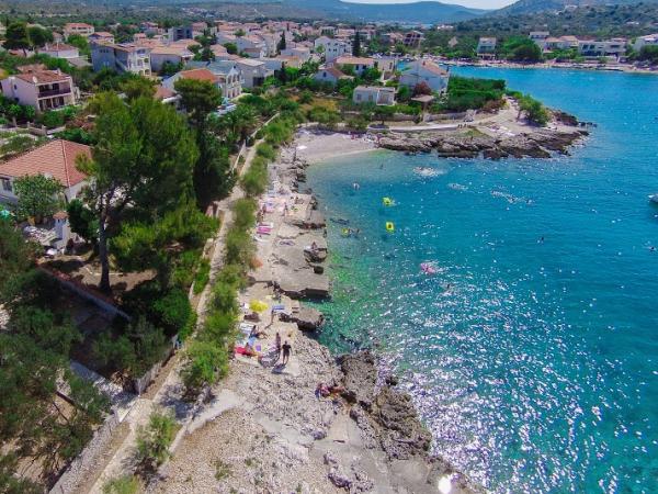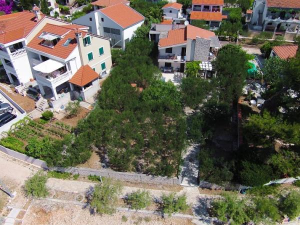 Apartamenty znajdują się w domu przez morze na działce o powierzchni 800m2. Dom jest typowym dalmatyńskim ogród (figi, oliwki, lawenda, kwiaty). Oliwki siana daje przyjemny cień w upalne letnie dni. W ogrodzie znajduje się grill, prysznic, ścieżka kamień wychodzi na plaży, gdzie cumowanie łodzi (za darmo). Za domem jest duży parking, do centrum miasta, z łatwym spacerem do morza w ciągu 20 minut. W pobliżu domu znajduje się ładny bar, gdzie w cieniu tamaryszek można cieszyć się poranną kawę lub w zachodzie słońca, popijając szklanką piwa .... Istnieją trzy apartamenty i właściciele mieszkania, aby pomóc w każdej chwili dyskretnie dostępne. Mówimy po angielsku, francusku i taljanski. Apartamenty wyposażone są w wysokiej jakości meble częściowo ręcznie (szafek), pościel, ręczniki, ręczniki kuchenne, naczynia, sztućce, małe urządzenia są integralną częścią. Na balkonie znajdują się stoły, krzesła, parasole, leżaki. Marmurowe posadzki i schody i balkony kamień biały Dalmacji.
