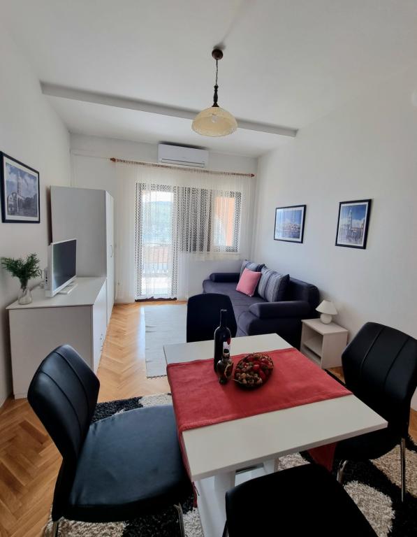 Apartamenty Vedrana mieszczą się w rodzinnym domu w Rogoznicy, małym miasteczku w sercu Dalmacji i stanowią doskonałą bazę wypadową do zwiedzania wszystkich głównych ośrodków turystycznych na chorwackim wybrzeżu. Tylko 20 km od Trogiru, 34 km od Szybenika i 50 od Splitu, nasze apartamenty oferują możliwość codziennych wycieczek do pobliskich miast, które emanują historią i kulturą, a jeśli chcesz cieszyć się piękną przyrodą, parki narodowe Krka i Kornati są zlokalizowane w pobliżu i stanowią doskonały wybór. Apartamenty Vedrana i rodzina Jurković zapraszają do swojego domu i serca. Spędź wakacje i zrelaksuj się razem z nami! Nasz dom położony jest na niewielkim wzniesieniu z widokiem na piękną zatokę, zaledwie 100 m od morza i plaży oraz 15 minut spacerem do centrum i starego miasta. Masz do dyspozycji 4 w pełni i nowocześnie wyposażone apartamenty, strzeżone miejsce parkingowe, prysznic na świeżym powietrzu, grill i duży dziedziniec z kilkoma stołami i tarasem do wspólnego użytku. Każdy apartament posiada osobne wejście, taras i widok na morze.