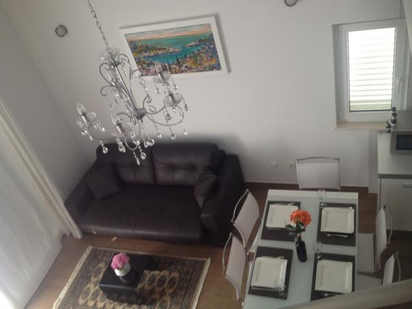 Całkowicie nowoczesne i luksusowo wyposażone apartamenty sklasyfikowane jako wysokie 4 w spokojnej części Zečeva Rogoznica dla tych, którzy chcą spokojnego wypoczynku. W pobliżu znajduje się centrum spa, restauracja i bar. Luksusowe apartamenty znajdują się 60 m od plaży, która jest częściowo żwirowa i częściowo wyłożona charakterystycznym kamieniem Benkovaca. Apartamenty składają się z 2 sypialni z podwójnymi łóżkami i dużymi szafami, 2 łazienek z pralką, w pełni wyposażonej kuchni ze zmywarką, mikrofalówki A (b) lub piekarnika A (a), lodówki i częściowej zamrażarki, dziennego salonu stół z 6 krzesłami, rozkładana sofa dla dwóch osób do spania, telewizor plazmowy, taras ze stołem i 4 krzesłami, i oferuje wspaniały widok na morze, wyspy i latarnię morską w oddali. Przed Villa Marin jest piękny duży ogród z trawą, palmami, drzewami oliwnymi ... a dookoła domu jest kamienny ogród. Oferujemy naszym gościom leżaki i parasole na plaży