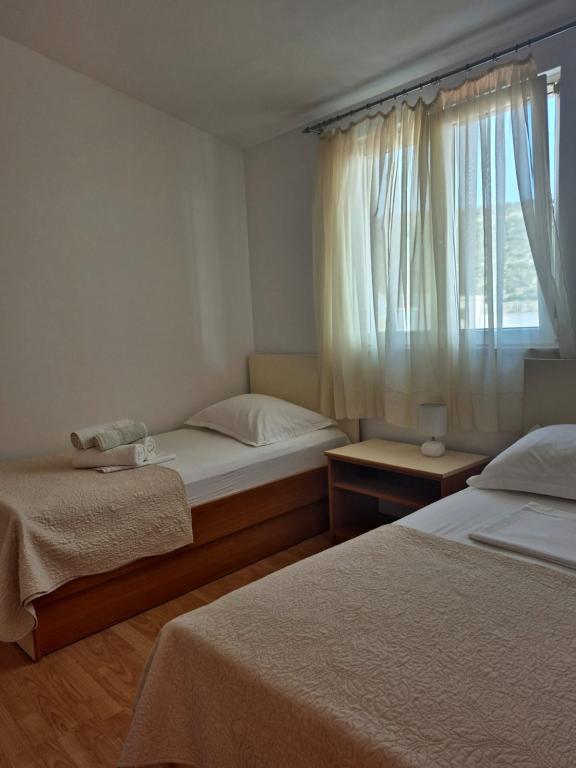 Rogoznica znajduje się w żupanii szybenicko-knińskiej, 32 km od Szybenika i 60 km od Splitu. Zamieszkana część wybrzeża jest jedną z najbardziej naturalnie bezpiecznych i chronionych zatok na Adriatyku. Rogoznica, spokojna śródziemnomorska miejscowość w sercu Dalmacji, jest idealnym miejscem na wakacje z rodziną i przyjaciółmi. Każdy z 3 apartamentów posiada: kuchnię wyposażoną do codziennego przygotowywania wszelkiego rodzaju posiłków, 2 sypialnie, toaletę oraz taras. Klimatyzacja w cenie. Znajdujemy się 40 metrów od morza. Posiadamy własny parking.