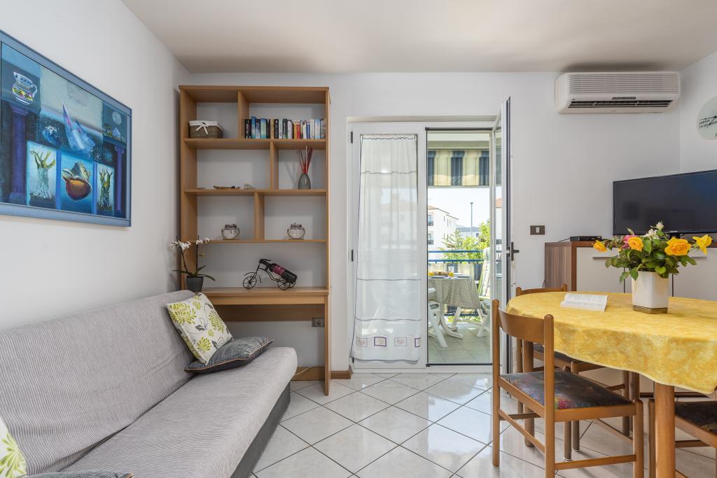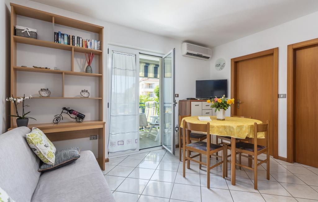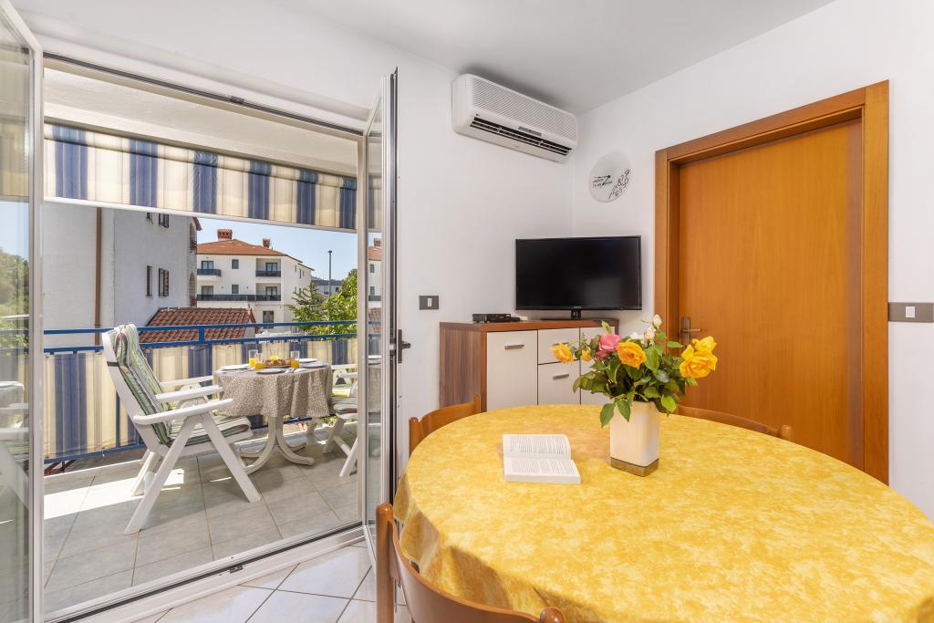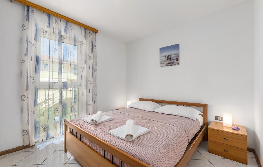 Apartament znajduje się zaledwie 400 m od morza (5 minut pieszo) i 20 minut spacerem do centrum miasta (800 m). Apartament znajduje się na 1. piętrze budynku i składa się z dwóch sypialni dwuosobowych: jedna z łóżkiem małżeńskim, a druga z dwoma pojedynczymi łóżkami. Kuchnia, jadalnia i salon mają dostęp do pięknego balkonu z widokiem na zieleń i okolicę. Kuchnia jest w pełni wyposażona: 3 kuchenki gazowe, 1 elektryczna, toster, piekarnik, czajnik. W salonie znajduje się telewizja satelitarna, klimatyzacja. Łazienka składa się z prysznica, pralki, bidetu. Przed budynkiem znajduje się parking (za dodatkową opłatą 7 euro za dzień). W samym budynku znajduje się studio fitness i pilates. Ten apartament oferuje całkowicie relaksujący i przyjemny pobyt obok pięknych plaż Rovinj, gdzie prawie nie musisz używać samochodu, a my jesteśmy do Twojej dyspozycji w razie jakichkolwiek pytań!