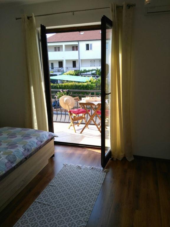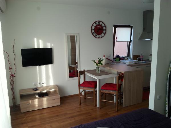 Apartament, niedawno odnowiony apartament znajduje się w rodzinnym domu w cichej części miasta, zaledwie kilka minut spacerem do plaży i 2 km od grada.Apartman są w pełni wyposażone (klimatyzacja, telewizor, telewizja satelitarna, internet, lodówka, ..) i posiadają tarasy Goście mogą korzystać z ogrodu i grill na przytulne spotkań w otoczeniu zelenilom.Parking w podwórzu.