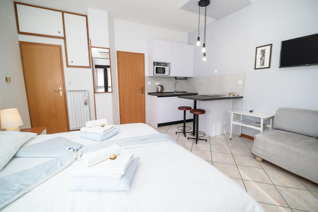 CO MOŻESZ U NAS OTRZYMAĆ: BEZPŁATNIE: Drink powitalny, Grill, Parking, Garaż na rowery, Leżaki na tarasach i w ogrodzie, Plan miasta, broszury, ulotki, Organizacja wycieczek według potrzeb gości, Rezerwacja kolacji w restauracji, Informacje o różnych obszarach i udogodnieniach, Cotygodniowe sprzątanie i wymiana pościeli, Wymiana ręczników 2 razy w tygodniu (na życzenie gościa), Transport z dworca autobusowego lub portu do apartamentu. ZA DODATKOWĄ OPŁATĄ: Łóżeczko dziecięce (5 €), Rower (po wcześniejszym uzgodnieniu), Codzienna lub częstsza wymiana ręczników (1 € za osobę), Transfer z lotniska (po wcześniejszym uzgodnieniu). OFERUJEMY ZAKWATEROWANIE: w komfortowych i czystych apartamentach z ogrodem i bezpłatnym parkingiem, w spokojnej i cichej ulicy, blisko plaż i centrum miasta, dzięki czemu można dojść pieszo do wybranego miejsca lub skorzystać z wybranych atrakcji (festiwalu salsy, Dni Foto Rovinj, koncertów, wystaw itp.).