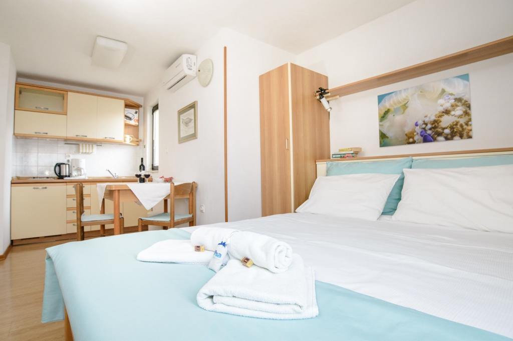 Spędziliśmy tydzień z rodziną na wakacjach w pięknym apartamencie Ines. Mieszkanie jest częściowo pod ziemią, więc w upalne dni nie odczuwa się w nim ciepła, mimo że jest tam działająca klimatyzacja. Mieszkanie jest dokładnie takie jak na zdjęciach, z dużym zielonym tarasem w półcieniu, co było bardzo wygodne dla naszego dziecka. Na początku brakowało nam niektórych gier na tarasie, ale szybko zdaliśmy sobie sprawę, że w pobliżu jest wystarczająco dużo innych gier. Do plaży jest 10-15 minut spacerem, ulica jest cicha, a właściciel jest bardzo przyjazny i uczciwy. W kuchni znajduje się również wystarczająca ilość przyborów do samodzielnego gotowania. Czuliśmy się dobrze w apartamencie i polecamy go rodzinom.