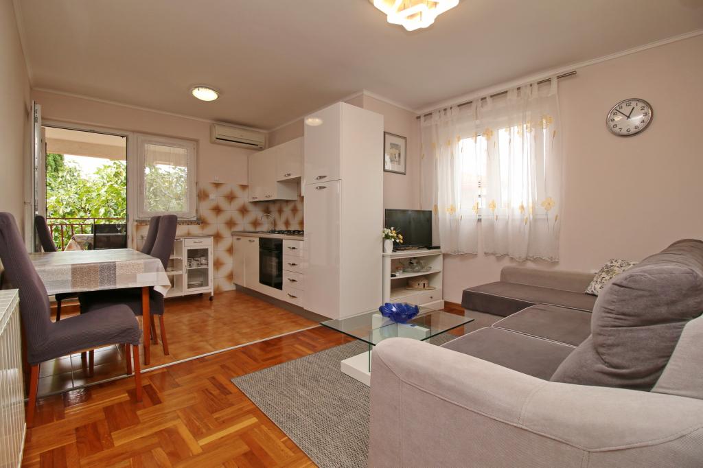 Bardzo ładny apartament z widokiem na zabytkowe centrum (apartament na poddaszu). Apartament jest czysty, duży taras, wystarczające wyposażenie. Właścicielka jest miła i sympatyczna, ciągle pytała, czy wszystko w porządku. Jedyne, do czego mogłabym się przyczepić, to to, że w apartamencie dla 5 osób były tylko 3 kieliszki do wina i 3 do shotów. Poza tym byliśmy bardzo zadowoleni. Do morza jest około 1000 m spacerem (10 minut). Do centrum 15 minut.