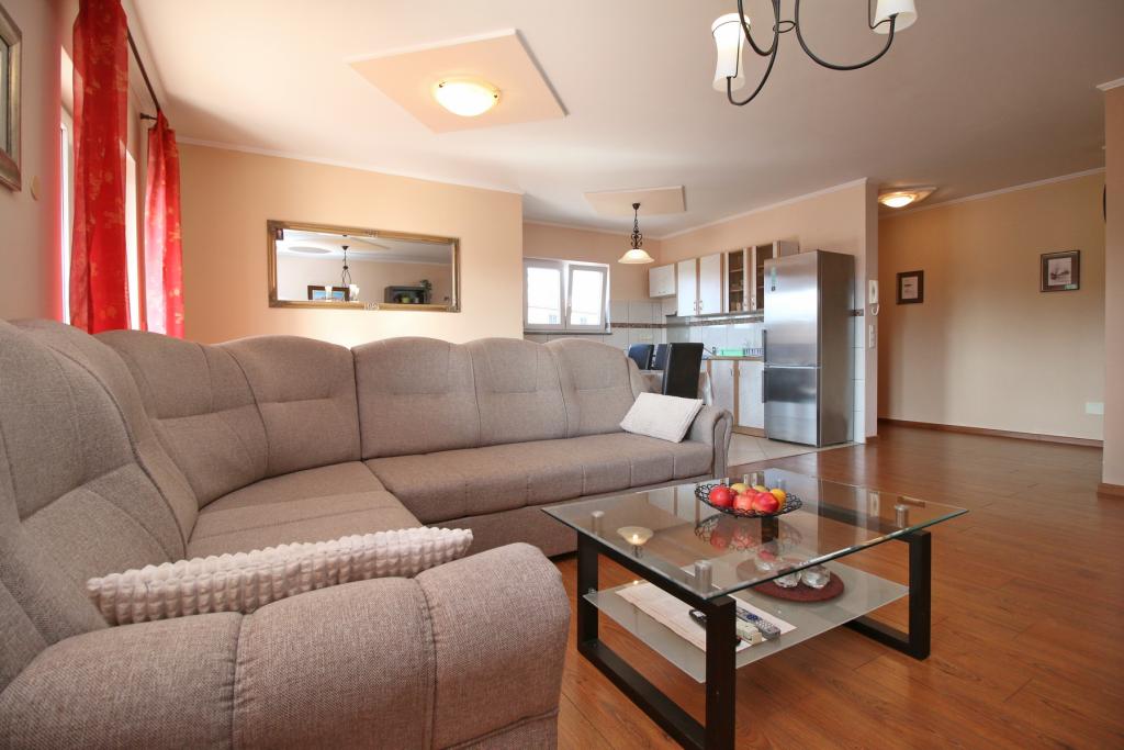 Przepiękny duży 90 m apartament, 2 sypialnie i olbrzymi salon z aneksem kuchennym i pięknym tarasem. Apartament czyściutki i świetnie wyposażony. Świetna lokalizacja - do plaży dosłownie 10 minut spacerkiem, do miasta około 15-20 minut. Przemili właściciele ! Polecam - 100% zadowolenia !
