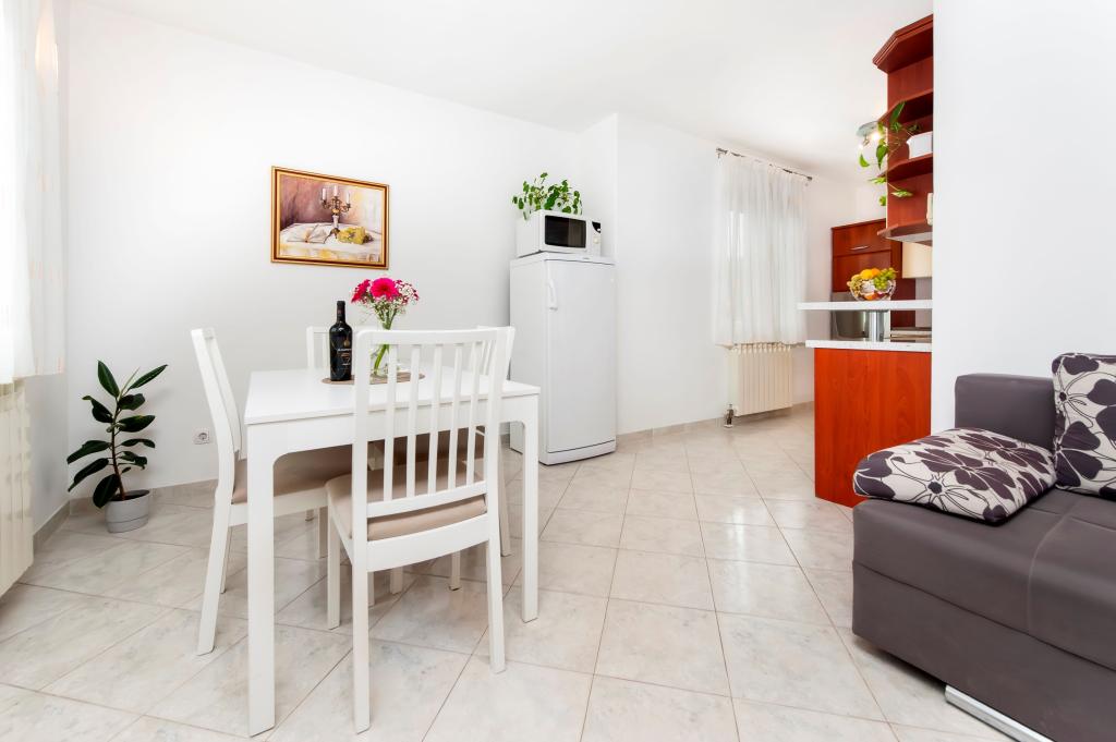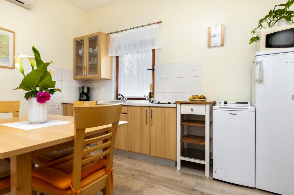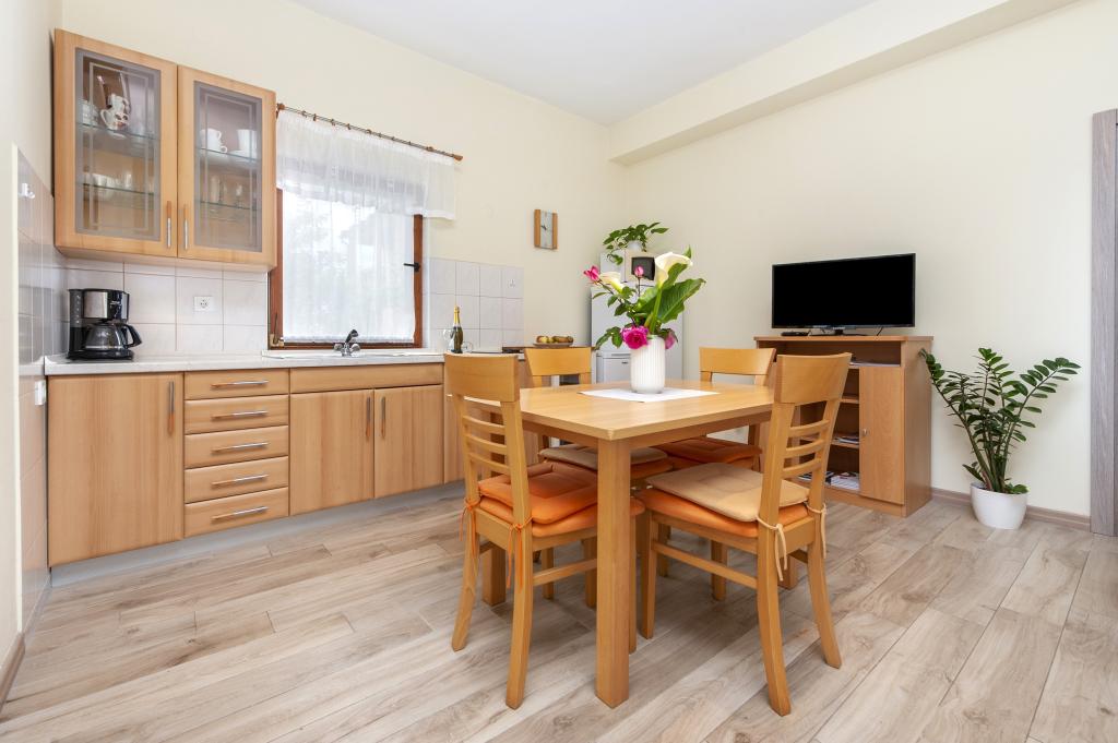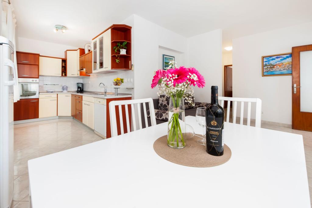 Łóżeczko dziecięce i krzesełko do karmienia dostępne bezpłatnie na życzenie. Apartamenty są w pełni wyposażone i klimatyzowane. Cena obejmuje pościel, ręczniki do użytku w apartamencie, korzystanie z klimatyzacji, Wi-Fi, jedno miejsce parkingowe na apartament na podwórku. Wymiana pościeli i ręczników po wcześniejszym uzgodnieniu. Pralka w apartamentach A2+1 SANDRA i A4+1 SANDRA. Zmywarka w apartamencie A4+1 SANDRA.