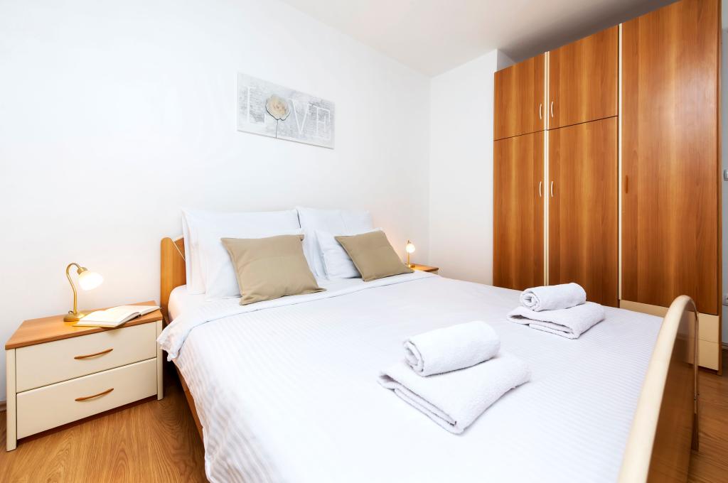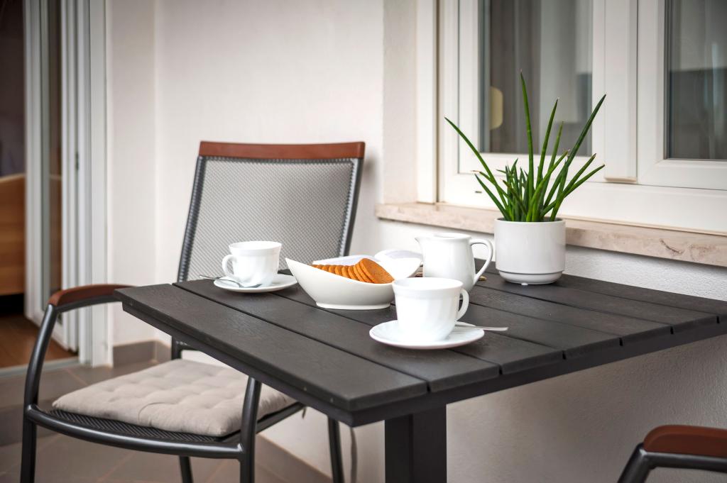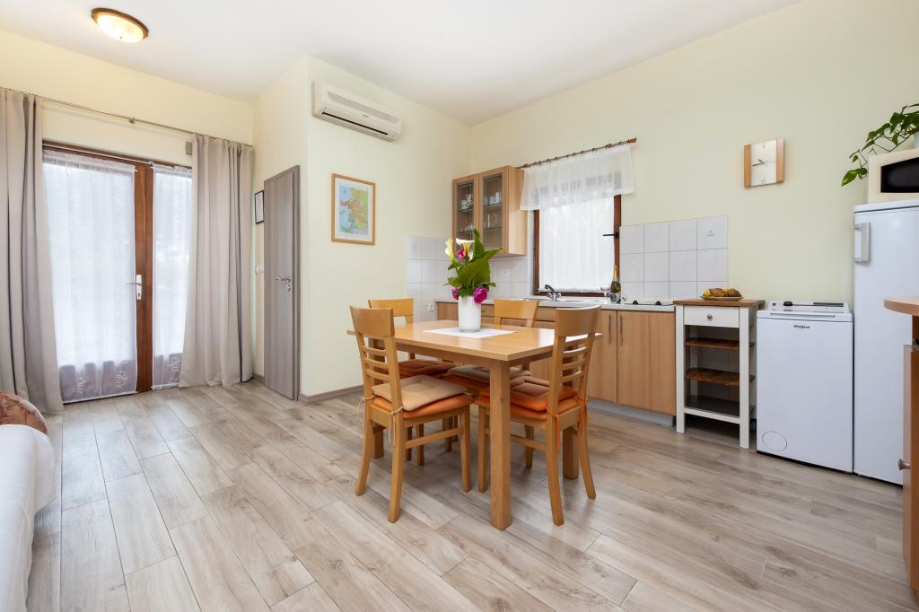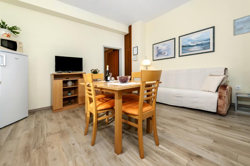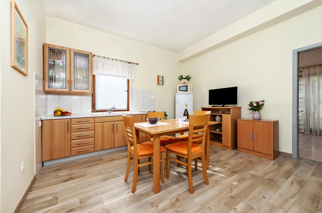 Łóżeczko dziecięce i krzesełko do karmienia dostępne bezpłatnie na życzenie. Apartamenty są w pełni wyposażone i klimatyzowane. Cena obejmuje pościel, ręczniki do użytku w apartamencie, korzystanie z klimatyzacji, Wi-Fi, jedno miejsce parkingowe na apartament na podwórku. Wymiana pościeli i ręczników po wcześniejszym uzgodnieniu. Pralka w apartamentach A2+1 SANDRA i A4+1 SANDRA. Zmywarka w apartamencie A4+1 SANDRA.