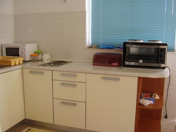 Spędziliśmy 2 tygodnie w apartamencie A3. Były tam 2 sypialnie, 2 łazienki, kuchnia z jadalnią. Kuchnia całkiem dobrze wyposażona - lodówka, czajnik, kuchenka 2 palnikowa i coś w rodzaju piekarnika z 2 płytami do gotowania. Brak mikrofalówki widocznej na zdjęciach. W jednej z łazienek pralka. Dojście do domu po kilkudziesięciu schodach, zejście na plaże również po schodach - ok 90. Trzeba mieć kondycję, nie nadaje się dla osób starszych i chorych. Parkowanie samochodu przy głównej ulicy, nie było miejsca parkingowego. Brak również było dużych ręczników. Dostaliśmy tylko małe, W Celinie nie ma sklepu. Idąc w prawo dotrzemy do studenaca - ok 600 m - tam jest najbliżej, idąc w lewo ok 800 m są 2 sklepy - studenac i Jamnica. Sklepy otwarte do 21, w niedzielę studenac do 14, Jamnica do 21. Ogólnie pobyt bardzo udany. Polecam. Katarzyna z rodziną