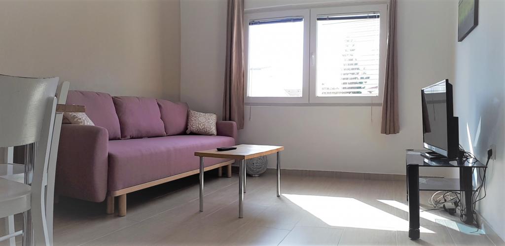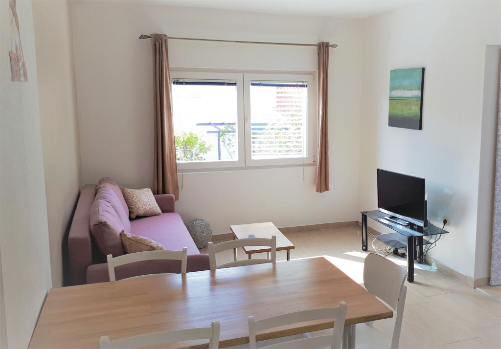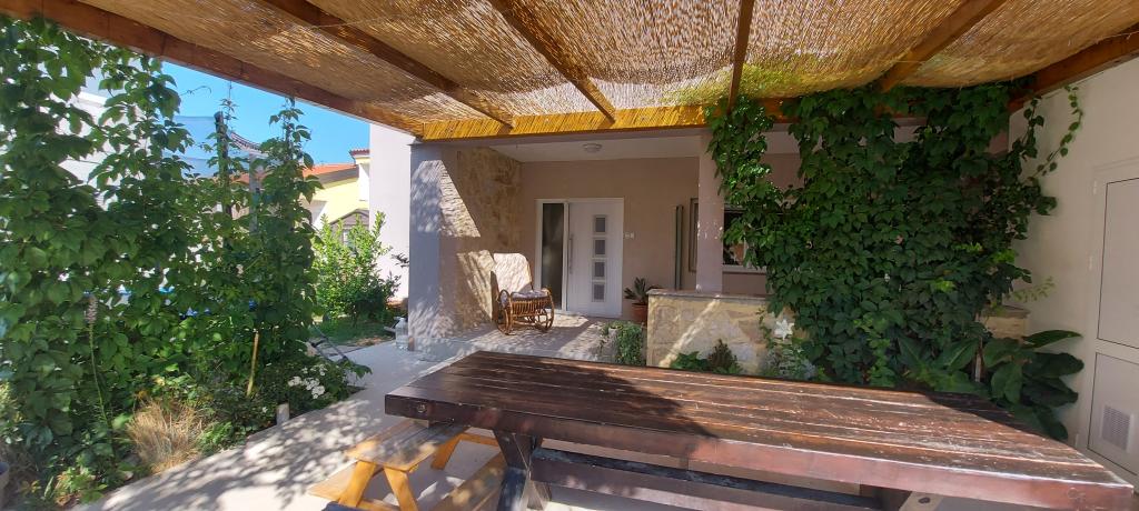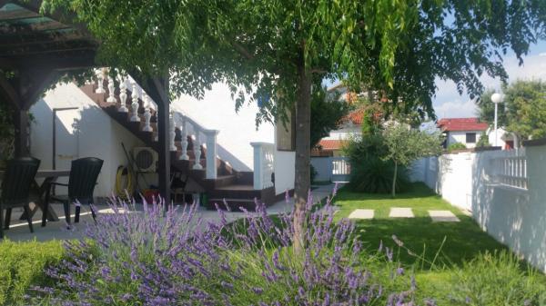 Mieszkanie z zagospodarowanym podwórkiem i spokojną okolicą. To jest 50 m do centrum wioski i 300 m do plaży. Mieszkanie wyposażone jest w wygodne łóżka, nowo wyremontowaną łazienkę, telewizję satelitarną, Wi-Fi i klimatyzację. Do apartamentu przynależy taras z parasolem przeciwsłonecznym. Na podwórku znajduje się również altana z grillem do użytku.