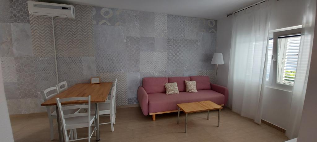 Zakwaterowanie było w przyjemny apartament na parterze z tarasem. Sprzęt kuchenny w pełni wystarczające ... więcej deluxe. 1 podwójne łóżko (w sypialni z dużą szafą) + jeszcze jednego łóżka (w głównym pokoju z kuchnią. Area). Zdjęcia mieszkania odpowiadają rzeczywistości. Funkcjonowanie WiFi. Dla telewizora sygnał zanika, ale daliśmy jej odejść tak więc nie patrzę w ogóle nam nie przeszkadzało. Taras z dużym stołem i krzesłami. 50 metrów od apartamentu znajduje się kilka sklepów z ciasta, owoce i warzywa, lody oraz minimarket. W miejsce přebívají a Chorwatów więc jest spokój. Do morza jest około 250 metrów w dół po schodach na molo lub bardzo wąskiej plaży. Duża szeroka plaża jest około 750 metrów w kierunku Nin ... więc z mniejszych dzieci, aby przejść z wózka, a także prowadzić samochód i zapłacić 30 kN na parking. Mamy wybrany inny wariant: Jechaliśmy samochodem wzdłuż głównej drogi w kierunku Vir i po 500 m lub 1 km skręcił w polną drogę w prawo, a my były piękne (choć niezarządzanych), piaszczystych plaż, gdzie było kilka osób. Idealny dla dzieci. Nawet 50 metrów od plaży, woda jest do pasa. Bardzo ładne miejsce do uprawiania windsurfingu. Gdy wieje od Velebitu, a więc można jeździć na żagle trio. Bardzo dobre miejsce dla rodzin z dziećmi i gdzie jego tata może przyjść do surfowania lub latawca. Zakwaterowanie i lokalizacja zdecydowanie polecam. Przenoszenie bez problemów i młoda dama jest bardzo przyjazny.