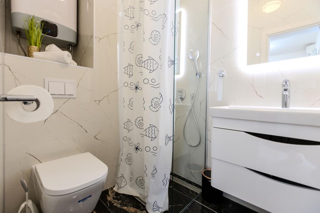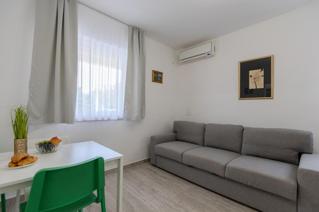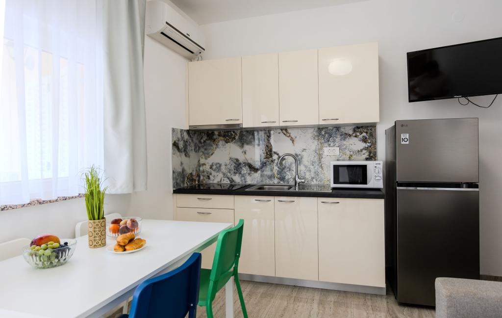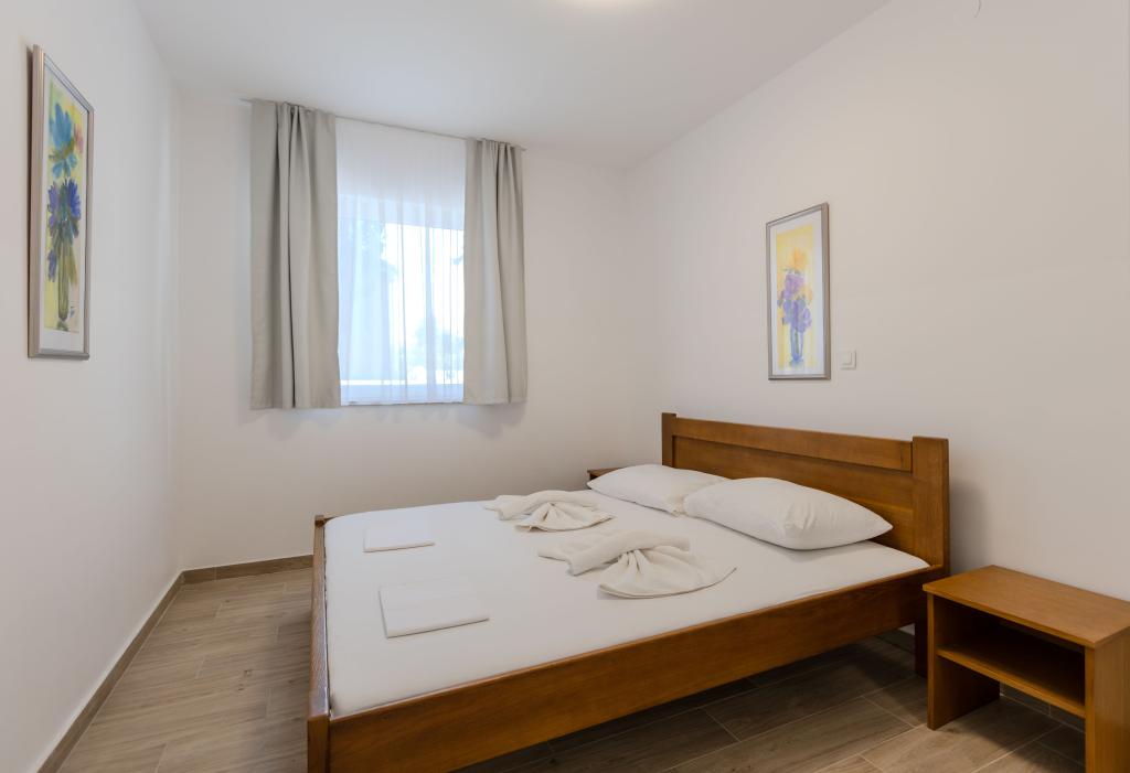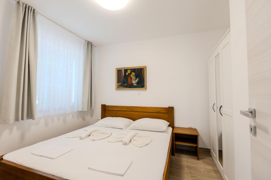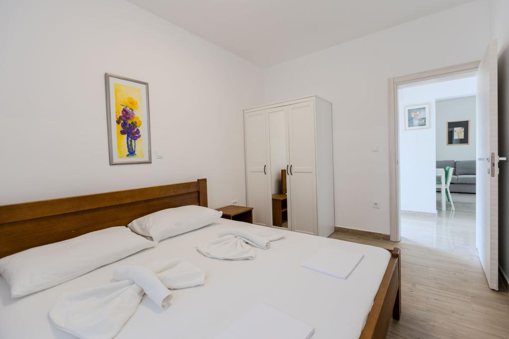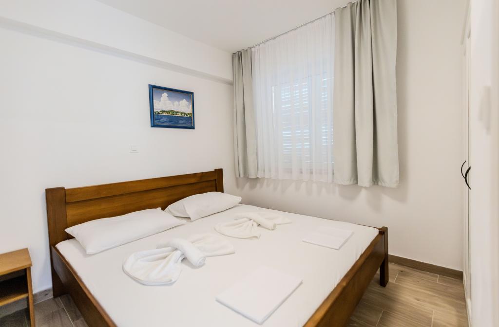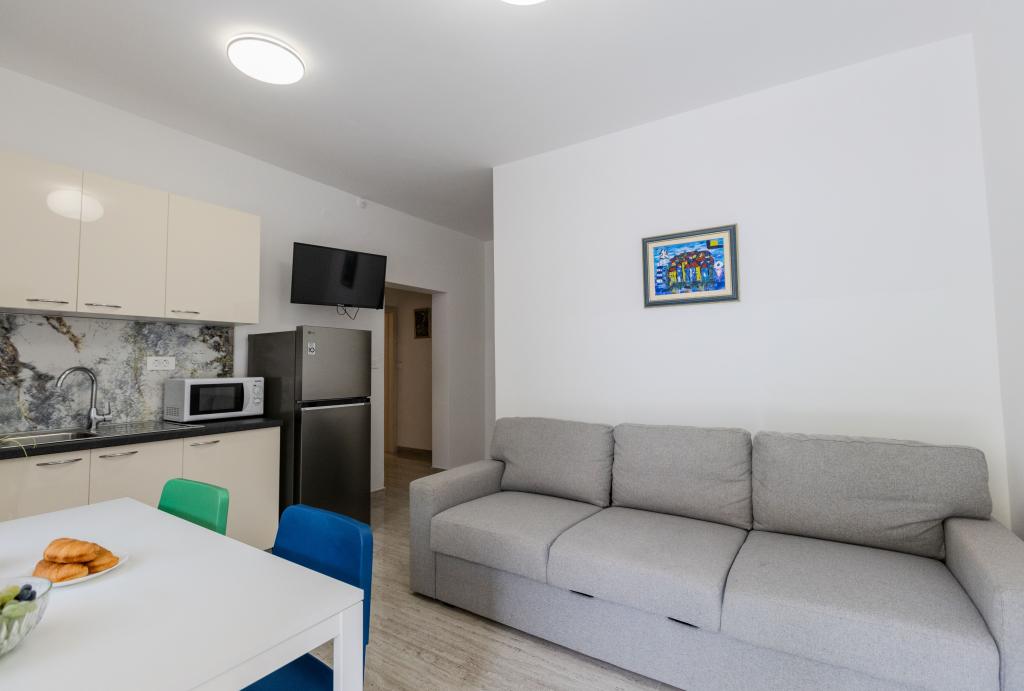 Mieszkanie jest czyste i duże i spełnia wszystkie potrzeby. Pokoje są przestronne, ale w mieszkaniu jest też klimatyzator, który działa świetnie. W mieszkaniu jest dużo gniazdek i wszystko co potrzebne (np. naczynia itp.). Mieszkanie posiada ładny i przestronny balkon z ładnym widokiem, stół i wiele krzeseł. W pokoju znajdują się szafki nocne oraz lampki, które gasną w zasięgu ręki nad łóżkiem. Łazienka ma ładne lustro i jest dość duża. Lokalizacja jest idealna. Rynek, plaża, piekarnia, kawiarnia i lodziarnia znajdują się w promieniu 5 minut od apartamentu. Drzwi są bezpieczne, a mieszkanie też wydaje się bezpieczne.