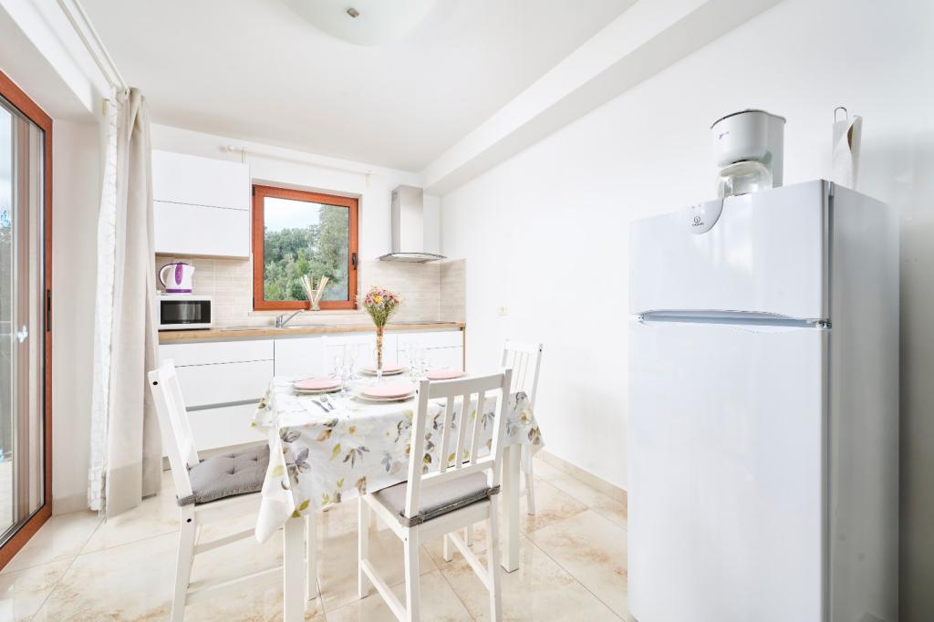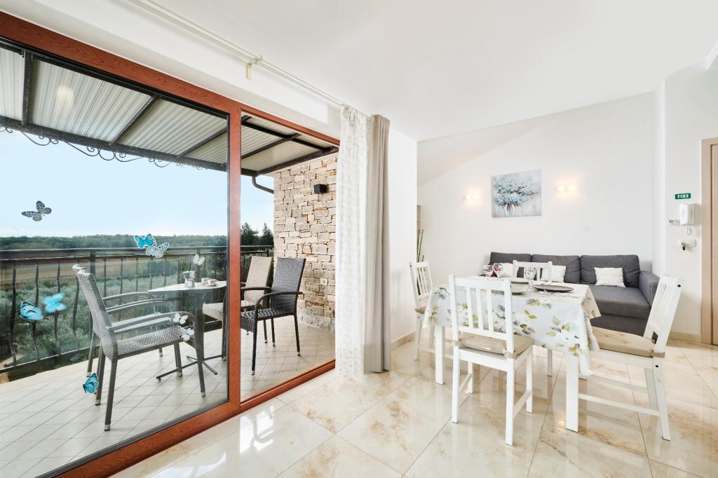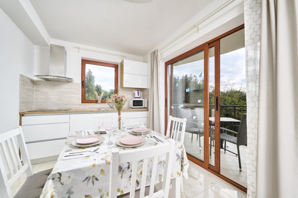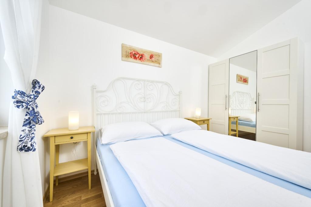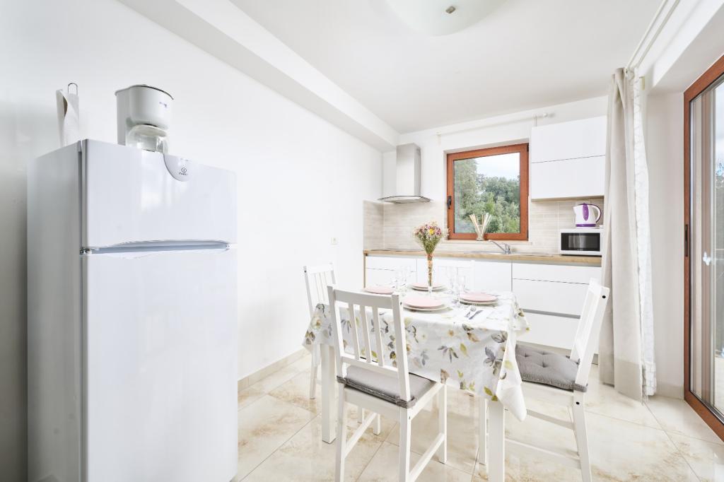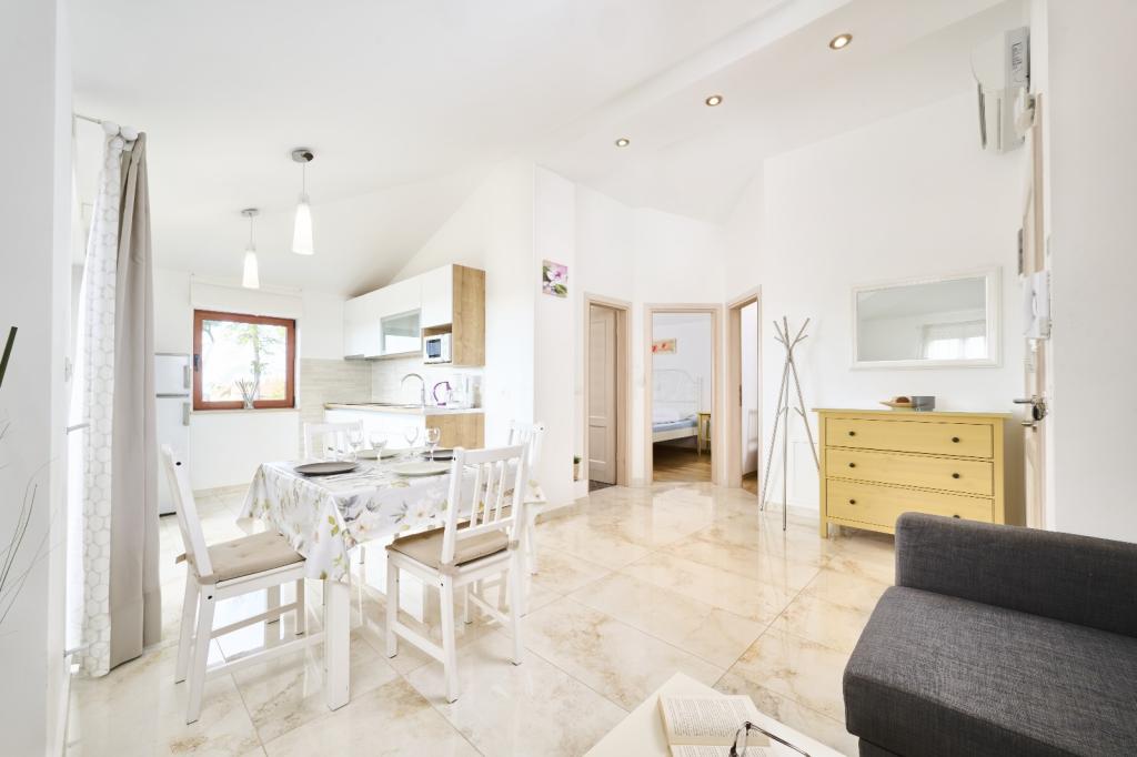Dwupokojowy, nowoczesny i wyposażony apartament. Jeden pokój z łóżkiem małżeńskim, drugi z łóżkiem piętrowym. Otwarty i przestronny salon, kuchnia ze zmywarką, łazienka z pralką. Taras, klimatyzacja, wifi, telewizja satelitarna. Basen, prywatny parking, zadaszony grill. Odległość od restauracji 300 metrów, odległość od plaży 1300 metrów