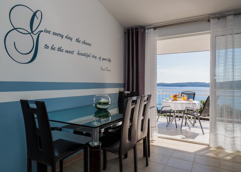 Apartamenty Adriatic Sea View znajdują się w samym sercu Dalmacji, w małej wiosce rybackiej Seget Donji z długą tradycją turystyczną, 2 km od miasta Trogir wpisanego na listę UNESCO i 22 km od Splitu i Pałacu Dioklecjana. Dysponujemy pięcioma komfortowo urządzonymi i ładnie wyposażonymi apartamentami, dostosowanymi do potrzeb naszych gości. Doskonałe położenie budynku, zaledwie 100 metrów od morza - plaży! Dzięki doskonałej lokalizacji apartamentu w pobliżu znajduje się wiele obiektów rozrywkowych i rekreacyjnych, kawiarni i restauracji. Wszystkie apartamenty mają piękny widok na morze, są schludne, czyste i przestronne, z dużą ilością światła dziennego. Każdy apartament posiada taras lub balkon, na którym można odpocząć przy pierwszej porannej kawie, a w ciepłe letnie wieczory z pięknym widokiem na księżycowe morze. Ważne: Każdy apartament ma osobne wejście - nie ma pomieszczeń wspólnych, które można dzielić z innymi gośćmi. Wdrażamy także dodatkowe środki bezpieczeństwa i higieny.