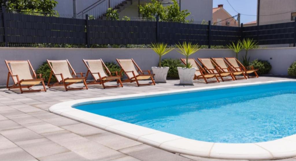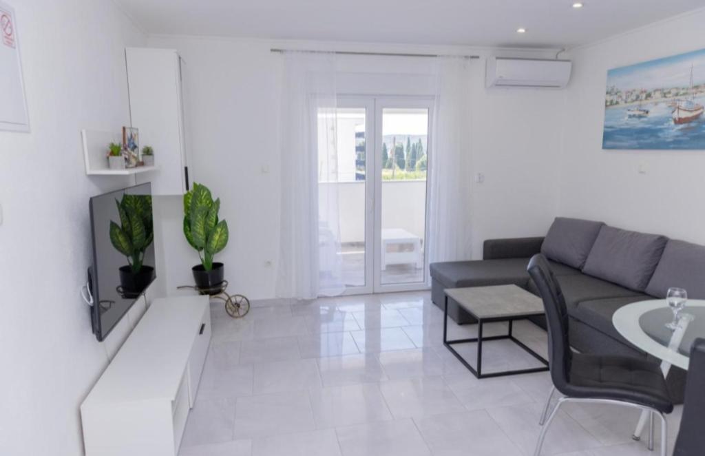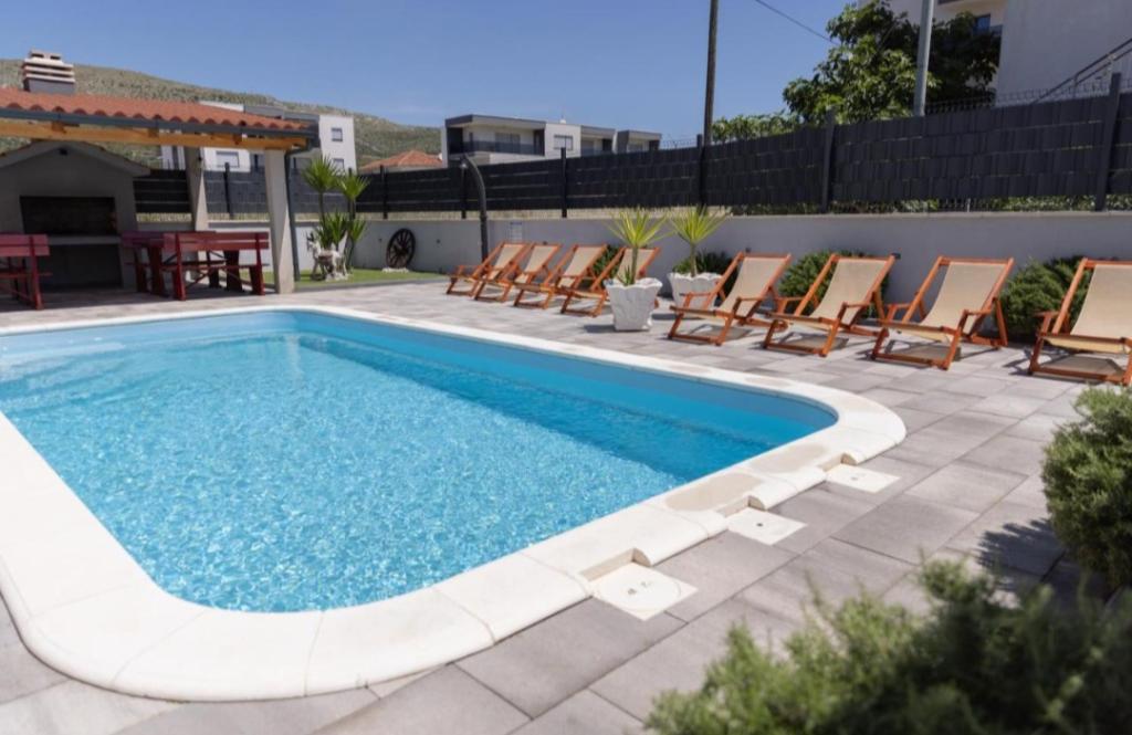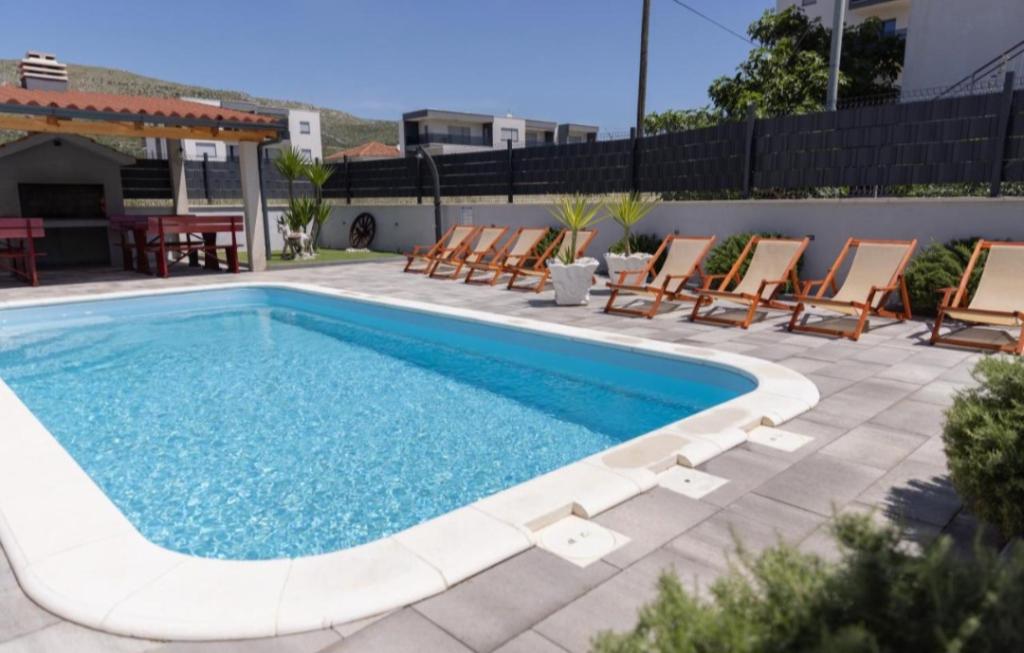 Nowo umeblowana willa w Seget Donji. Zawiera 2 apartamenty o powierzchni 65 m2 każdy. Każdy apartament posiada jedną łazienkę, dwie sypialnie z podwójnymi łóżkami. Każdy apartament posiada przestronny salon. Willa posiada ogród o powierzchni 168 m2, basen o powierzchni 30 m2, grill na świeżym powietrzu, leżaki do odpoczynku, bramki do gry w piłkę nożną na basenie. Obydwa apartamenty mają widok na basen i morze. Przystań Baotić oddalona jest od obiektu o 100 metrów. W odległości 50 metrów znajduje się sklep Tommy, w którym znajduje się sklep sprzedający świeże pieczywo, ciasta i świeże mięso. Restauracja Barba, kawiarnia i apteka znajdują się 50 metrów od obiektu. Willa położona jest na granicy Trogiru i Seget Donjeg.