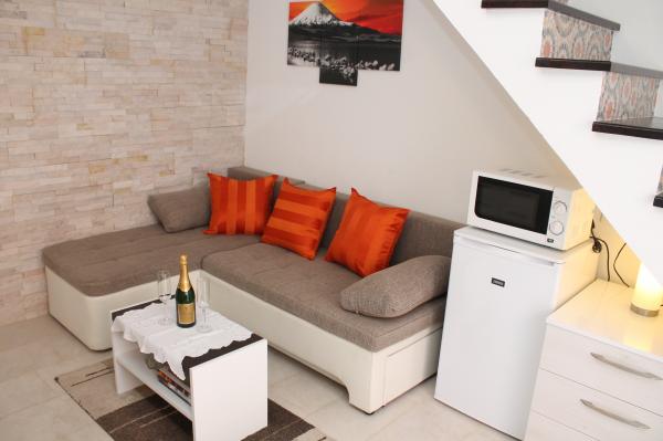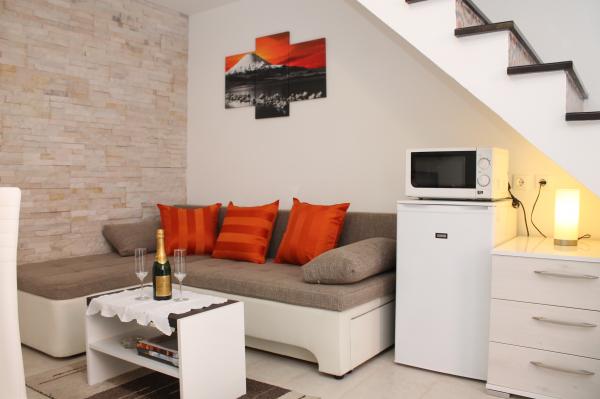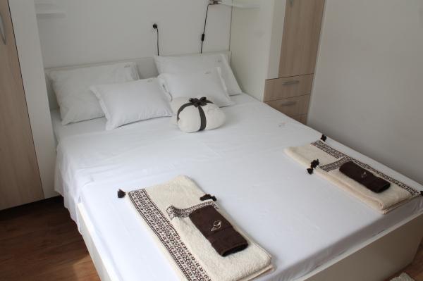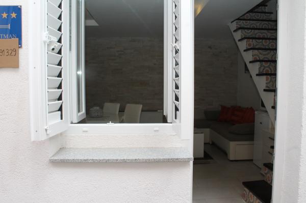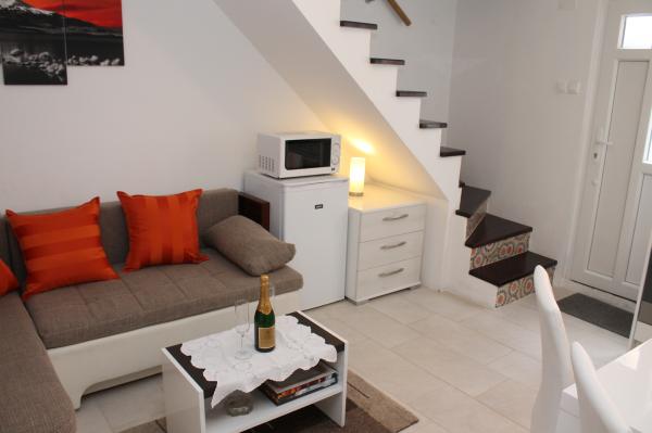 Nowocześnie wyposażone mieszkanie na dwóch kondygnacjach (dom jednorodzinny w rzędzie) z własnym tarasem na Starym Mieście w bardzo spokojnej okolicy i tylko 50 m od centrum, w pobliżu supermarketów, poczty, kantorów, kawiarni i restauracji. odległość od plaży 100 m. Na piętrze znajduje się sypialnia z łóżkiem małżeńskim 160x200 oraz łazienka, a na parterze salon z aneksem kuchennym oraz narożnik, który służy jako dodatkowe łóżko 160x200 . Mieszkanie jest w pełni wyposażone we wszystko do przyjemnego wypoczynku. Przed wejściem znajduje się taras o powierzchni 10 m2, który może służyć jako letnia jadalnia lub miejsce do wypoczynku. W domu obowiązuje zakaz palenia. Zwierzęta nie są akceptowane. Dla gości jest parking na jeden samochód 5 minut spacerem od apartamentu. Po wyjeździe gości apartament jest poddawany szczegółowej dezynfekcji, a także podejmowane są wszelkie środki w celu ochrony gości przed infekcjami. W razie potrzeby w pobliżu dostępna jest całodobowa pomoc medyczna.