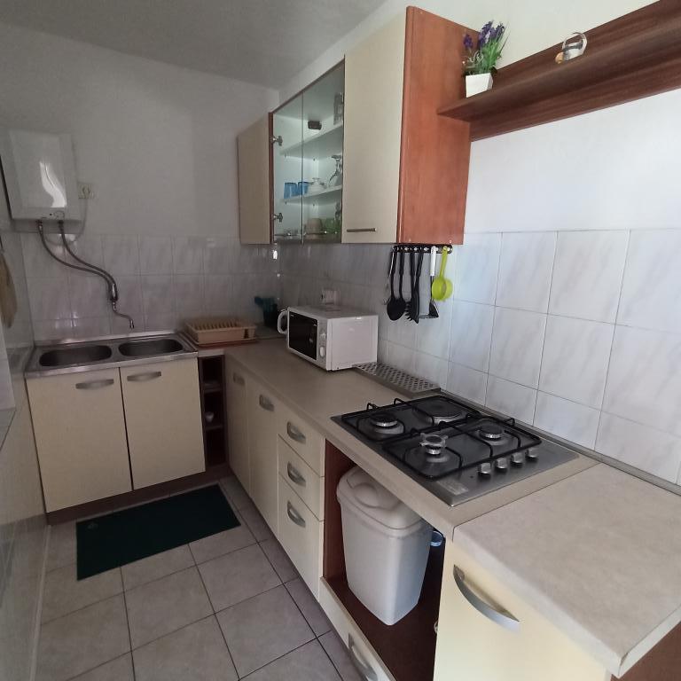 Apartament znajduje się w Selc, małej nadmorskiej miejscowości położonej 3 km na południe od Crikvenicy. Odległość od centrum i plaży to około 300m. Mieszkanie składa się z balkonu z widokiem na morze, dwóch sypialni, kuchni, salonu, łazienki z WC oraz oddzielnej toalety.