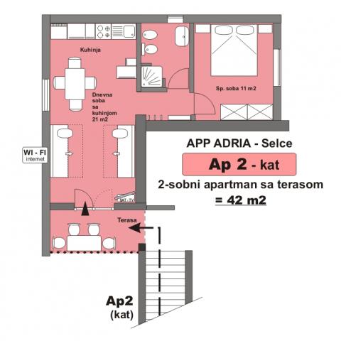 W pełni wyposażone apartamenty w domu jednorodzinnym z osobnymi wejściami i tarasami. Budynek położony jest w spokojnej części miasta. Parking na dużym zamkniętym podwórku w cieniu pod naturalną pergolą. Możliwość bezpłatnego korzystania z grilla ogrodowego. Za dodatkową opłatą możliwe jest codzienne korzystanie z klimatyzatora według rzeczywistych potrzeb gościa w zależności od pogody. Gość rejestruje użycie klimatyzatora na zasadzie zaufania. Rezerwacje apartamentu dokonywane są po wpłacie zaliczki w wysokości 25-30% całkowitej ceny umownej na rachunek bankowy właściciela obiektu. Pozostała część 70-75% jest płatna gotówką właścicielowi po przybyciu do apartamentu. Po przyjeździe gość ma obowiązek przekazać dokumenty osobowe wszystkich użytkowników do wglądu w aplikacji TZ i PU.