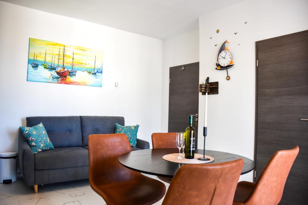 Apartament 2+2 zaspokoi pod każdym względem wakacje dla czteroosobowej rodziny. Ładnie urządzone mieszkanie, posiada wszystko czego potrzeba aby poczuć się jak w domu. Małe rzeczy wiele znaczą. Miła niespodzianka na Wielkanoc sprawiła, że dzieci były szczęśliwe. Wielkie dzięki ! Gospodarze są mili i dyskretni. Bliskość plaży, promenady i centrum to kilka minut spacerkiem, a jednak wystarczy, aby mieć swój spokój.