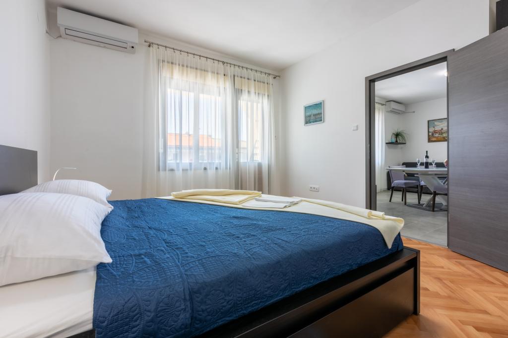 Apartamenty znajdują się w rodzinnym domu, kilka minut spacerem od morza i promenady z licznymi restauracjami, kawiarniami, obiektami sportowymi i sklepami. Apartament "Ema" (2+2) składa się z pokoju dwuosobowego, kuchni z jadalnią, w której znajduje się podwójna rozkładana sofa, którą można rozłożyć na łóżko małżeńskie, łazienki oraz przestronnego tarasu z grillem. Drugi apartament „Gita” (2+1) posiada dwuosobową sypialnię, przestronną kuchnię z jadalnią z rozkładaną sofą, łazienkę i przestronny taras.