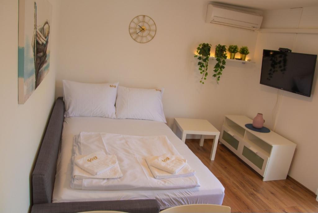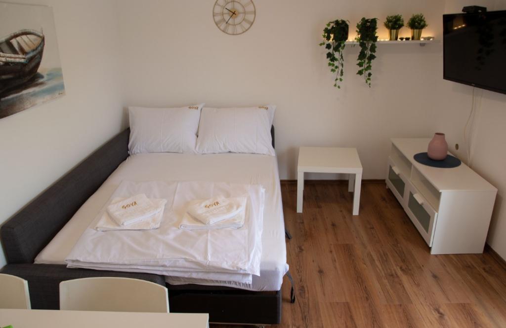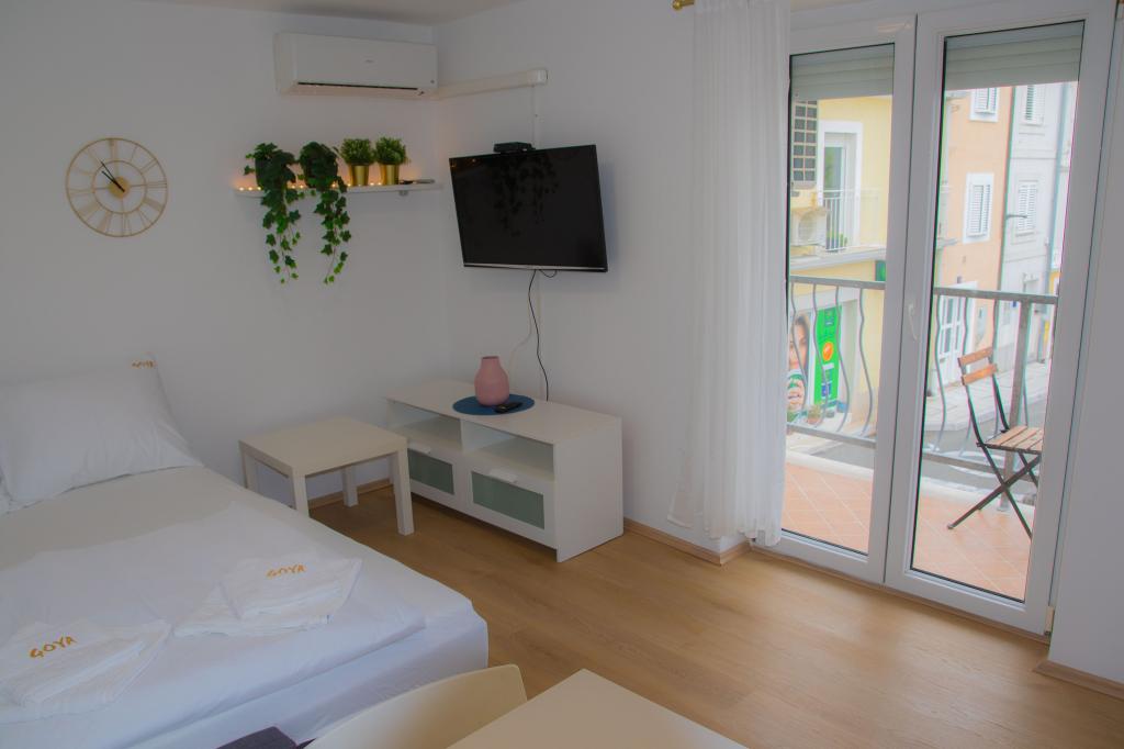Apartamenty Goya znajdują się w Selc, w żupanii primorsko-gorskiej, w samym centrum Selc, w pobliżu plaży Polača. Apartamenty są klimatyzowane i oferują widok na morze. Oferują one podłogi wyłożone kafelkami, łazienkę, telewizor z płaskim ekranem, bezpłatne WiFi, biurko, salon, wyposażoną kuchnię i balkon. Wszystkie apartamenty obejmują również część wypoczynkową i jadalnię. Apartament oferuje również taras. Plaża Polača oddalona jest od apartamentu Goya o 50 metrów, a plaże Rokan i Poli mora – o 400 metrów. Najbliższe lotnisko, Rijeka Airport, znajduje się 26 km od obiektu. Dostępny jest bezpłatny transfer z/na lotnisko.