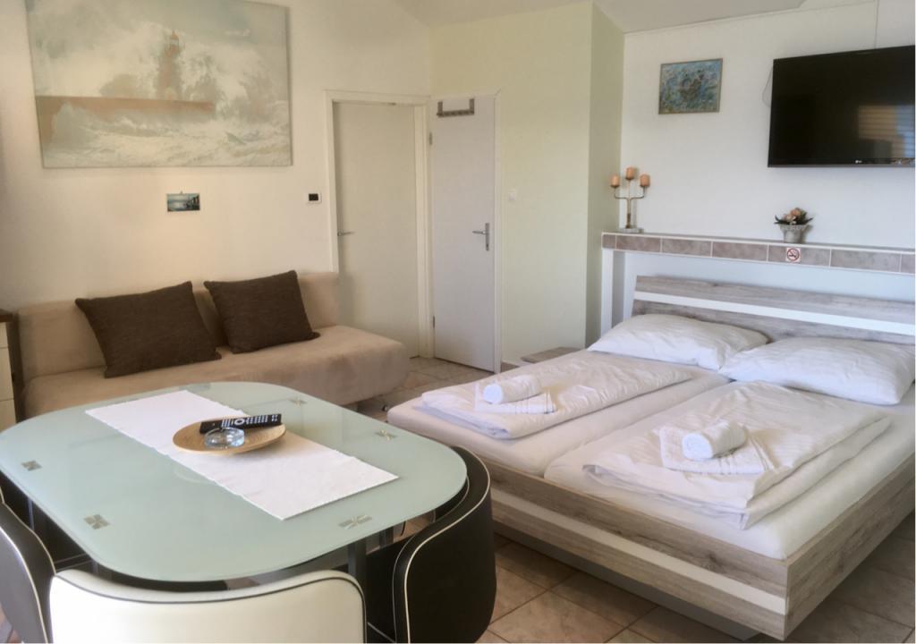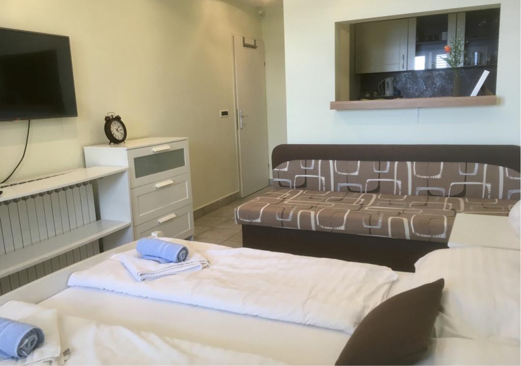 Apartament jest schludny, czysty, gustownie umeblowany i dobrze wyposażony. Do dyspozycji Gości są leżaki, parasole, deski surfingowe, rowery, pokój zabaw dla dzieci... Oprócz lokalizacji (pierwszy rząd do morza), jesteśmy zachwyceni przemiłą gospodynią Branką, która jest zawsze do dyspozycji gości. Dyskretna, pogodna, życzliwa i ciepła Pani Branka może być dla wszystkich wynajmujących przykładem tego, jak powinien wyglądać dobry gospodarz. Polecamy wszystkim, młodym i starszym, a także rodzinom z dziećmi. Śniadanie wliczone w cenę jest zróżnicowane i odpowiednie dla każdego gustu.
