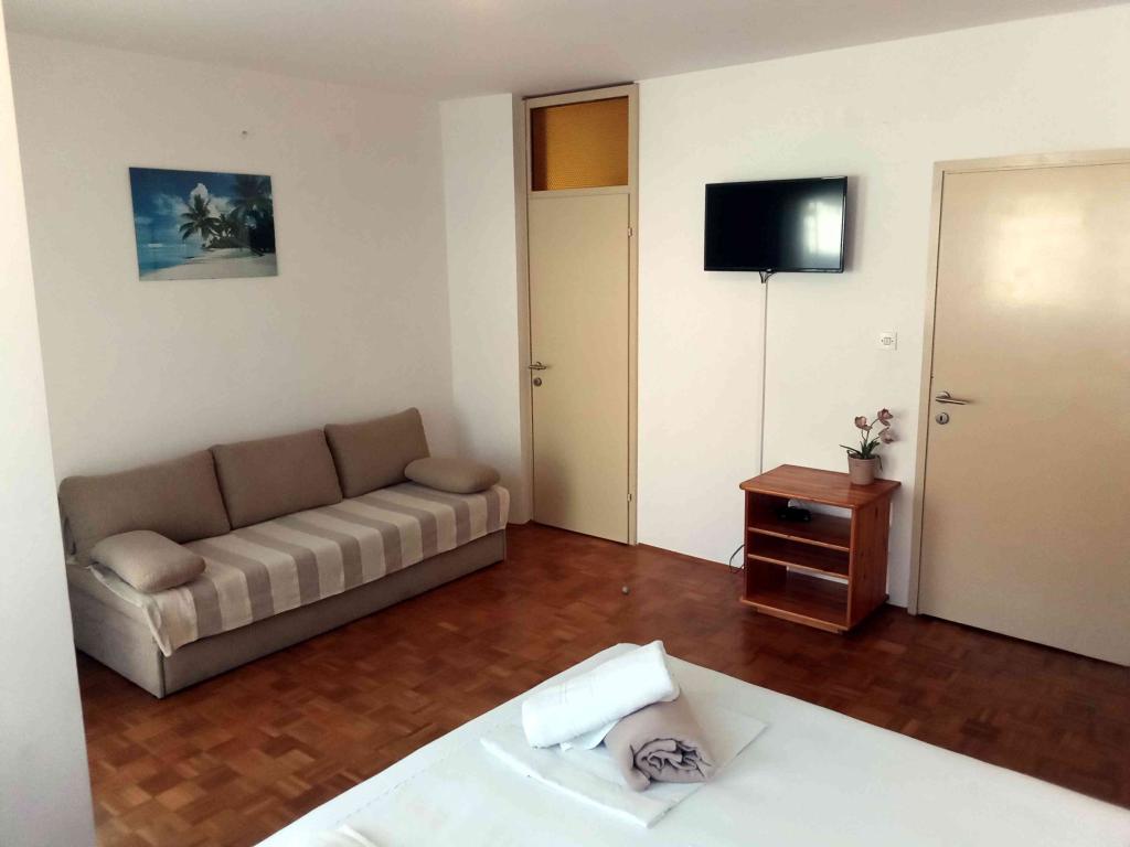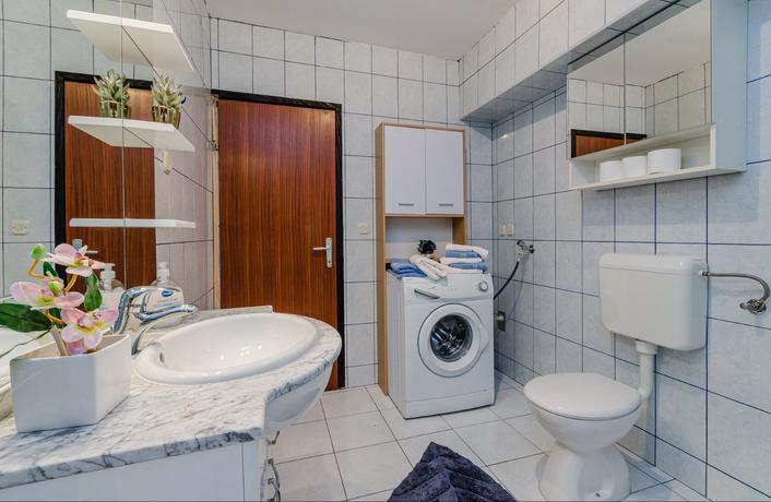 Pięknie urządzone apartamenty w Selce, oddalone o około 4-5 minut spacerem od centrum miasta i wszystkich ważnych udogodnień – głównego placu, banku, poczty, piekarni, supermarketów, targu, biur podróży, kawiarni i restauracji z tarasami nad morzem... itp. Z domu na plażę jest około 8-10 minut spacerem wzdłuż brzegu morza. Apartamenty znajdują się w domu rodzinnym z własnym parkingiem i małym podwórkiem z ogrodem.