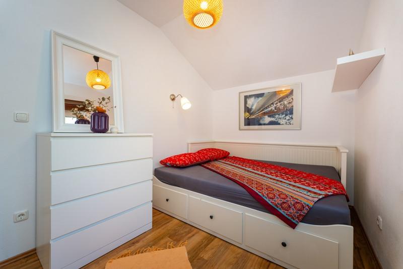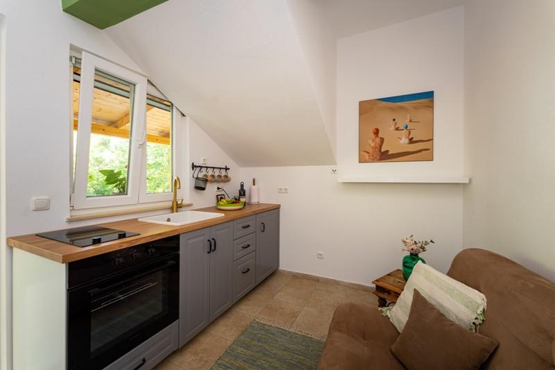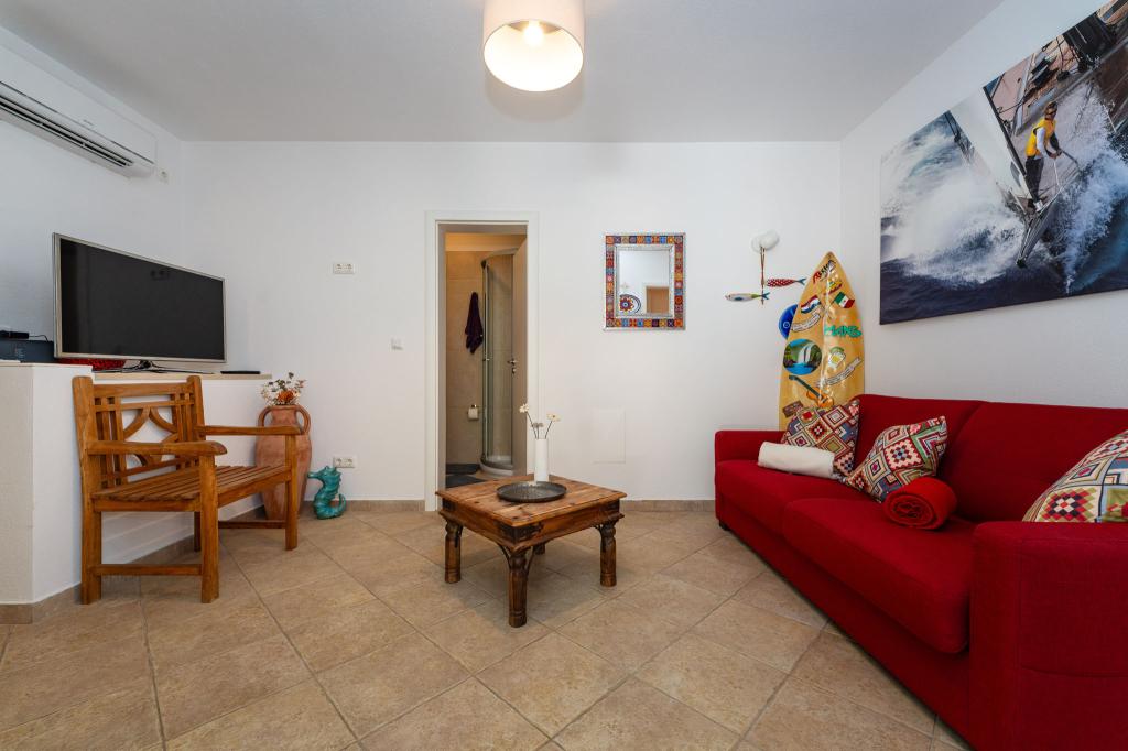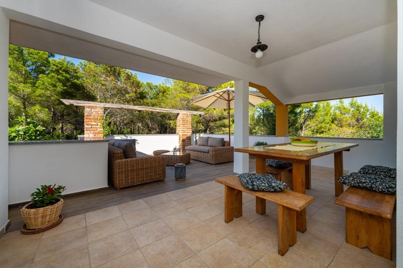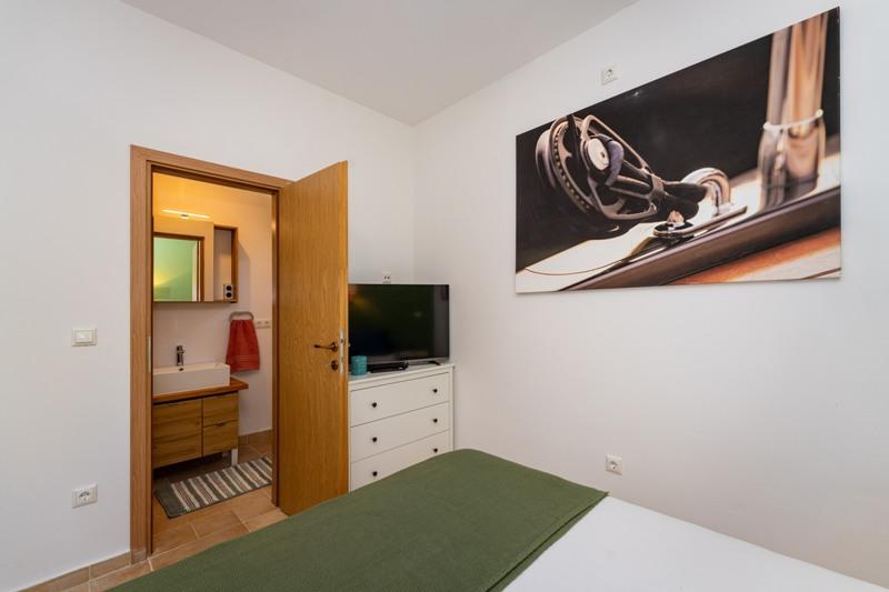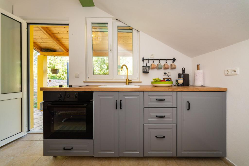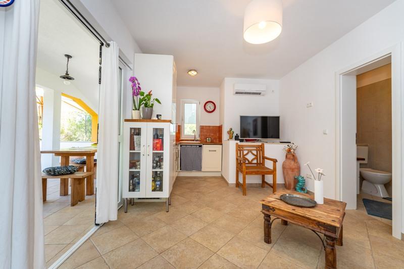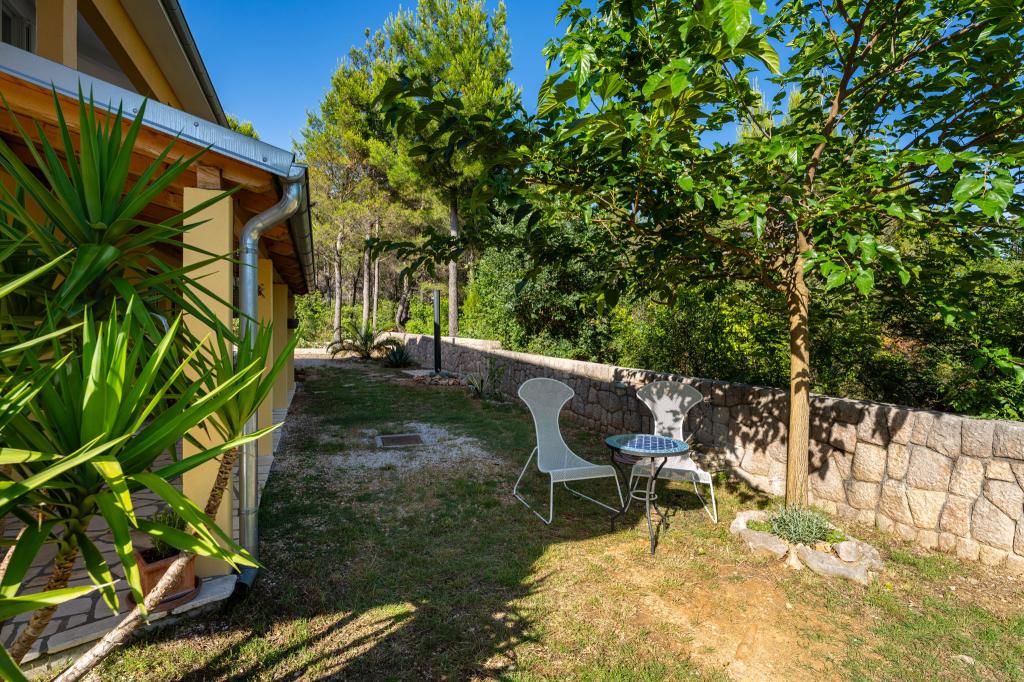 Obiekt położony jest w spokojnej okolicy, obok lasu sosnowego i niedaleko centrum Selina (250 m). Idealny wybór na spokojny wypoczynek rodzinny lub wypoczynek we dwoje z dala od codziennego zgiełku i tłoku. Przed domem znajduje się pięknie zagospodarowany ogród, w którym goście mogą urządzić grilla lub zrelaksować się na leżakach w cieniu sosen. W budynku znajdują się 2 apartamenty - 1 apartament dla 4 osób (2 sypialnie) i 1 apartament dla 2 osób. Są one wyposażone we wszystkie udogodnienia niezbędne do przyjemnego i relaksującego wypoczynku. Każdy apartament posiada telewizję satelitarną, klimatyzację i Wi-Fi. Dostępny jest także prysznic ogrodowy.