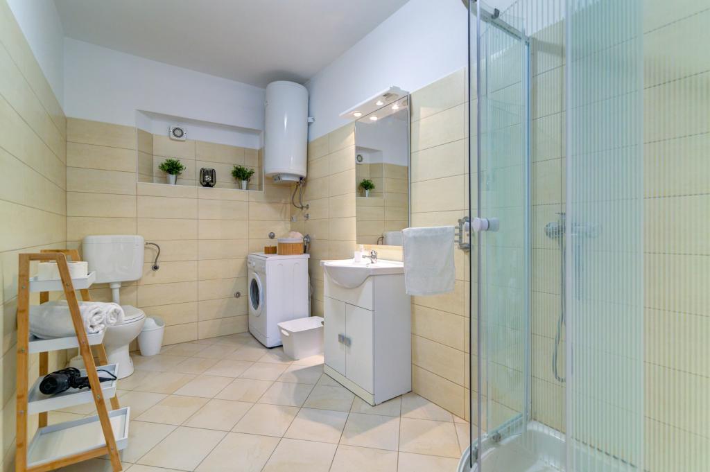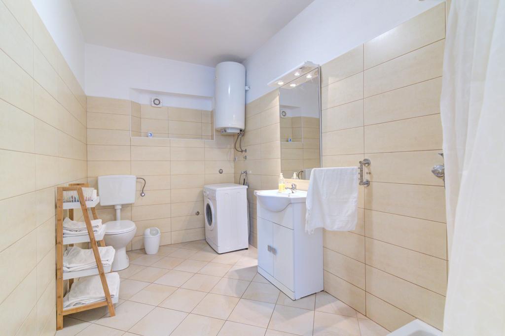 Duże wygodne mieszkanie, dobrze wyposażone, z klimatyzacją choć bez zmywarki. Jest tak jak w opisie i na zdjęciach. Właściciel bardzo sympatyczny; porozumiewaliśmy się po angielsku, ale można też w języku "słowiańskim". Do najbliższej plaży idzie się kilka minut osiedlowymi uliczkami, przechodząc na końcu ruchliwą drogę i 200 schodów. Zdecydowanie warto bo jest piękna! Mimo że niewielka to za każdym razem jak tam byliśmy było miejsce dla naszej szóstki (byliśmy w Senj na początku lipca). Z boku plaży jest miejsce z którego można poskakać do wody, można też przejść wodą lub przepłynąć na podobną plażę obok, lub dalej na skały. Na plaży jest źródełko (podobnie jest w innych takich miejscach w okolicy) które daje bardzo ciekawy efekt. Blisko brzegu, słodka chłodniejsza woda gromadzi się cienką warstwą na powierzchni, nad cieplejszą woda morską, zanim się z nią wymiesza w falującym morzu. W centrum Senj dwa duzę markety (5 min samochodem od apartamentu), restauracje i lodziarnie. W centrum są też dwie częściowo wybetonowane plaże. Przy obu można zaparkować, a na jednej z nich jest pomost do skakania. W pobliżu dwa boiska na których po plażowaniu grywaliśmy międzynarodowe mecze piłkarskie do zachodu słońca. Z gór otaczających miasto nie zdążyliśmy skorzystać, choć na pewno też warto.