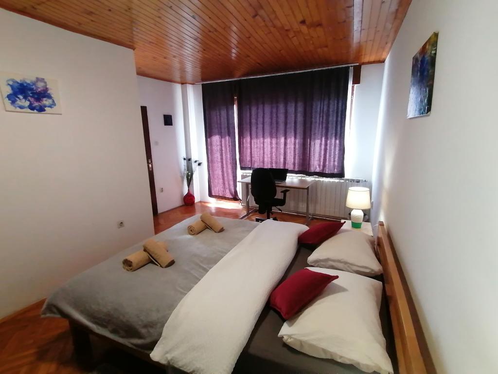 Witamy w naszym uroczym i przestronnym apartamencie o powierzchni 65 m², położonym w spokojnej dzielnicy Dubec, Sesvete! Tylko 400m od głównego dworca autobusowego i tramwajowego jest idealnym miejscem na wypoczynek lub pobyt służbowy. Ciesz się jasnym salonem z jadalnią dla 4 osób, w pełni wyposażoną kuchnią (kuchenka, lodówka) i wygodną sypialnią z łóżkiem (160x200 cm) oraz wysokiej jakości materacem i wysokiej jakości poduszkami. Zrelaksuj się na balkonie przy porannej kawie lub w łazience z wanną. Mieszkanie jest klimatyzowane, z bezpłatnym Wi-Fi i całodobową ochroną dzięki kamerze Reolink. Tylko 3 minuty spacerem dzielą Cię od sklepu i rynku. Trg ban Jelačić jest 35-45 minut tramwajem, Maksimir 20-30 minut samochodem, a Jarun tylko 25 minut. Zagrzeb jest kluczowym węzłem komunikacyjnym łączącym Europę z Adriatykiem, a nasz apartament ma doskonałe połączenie ze wszystkimi głównymi autostradami: A3 do Słowenii i Europy Zachodniej, A4 do północnej Chorwacji i Węgier, A1 do Dalmacji i A2 do Słowenii.