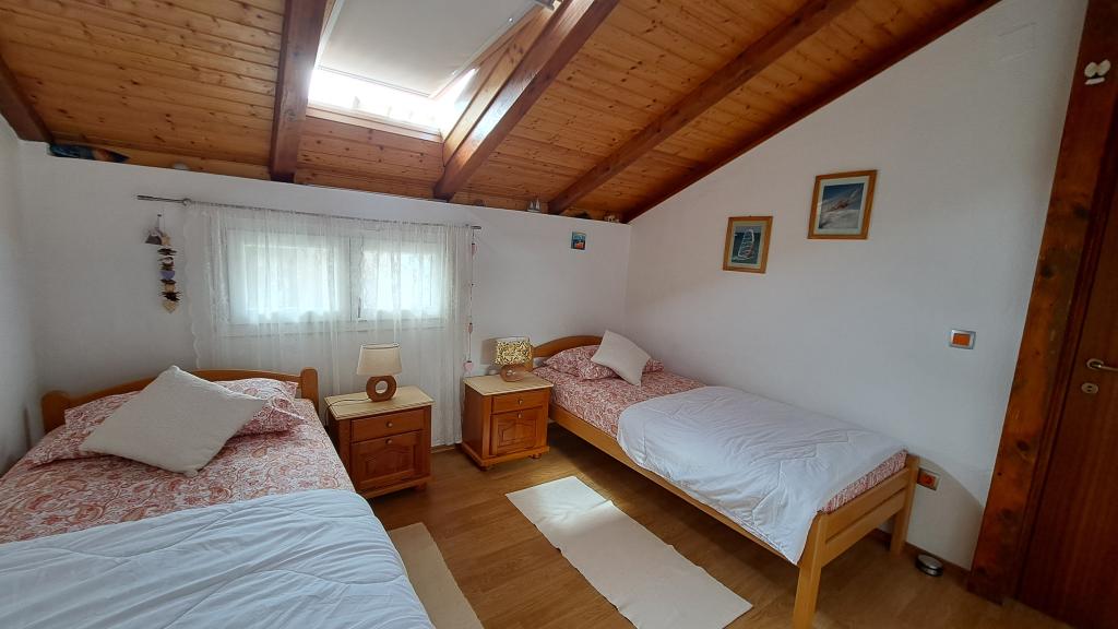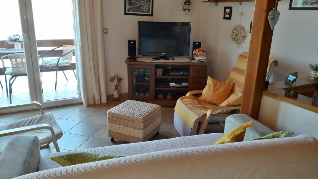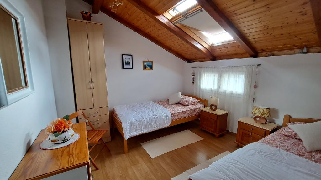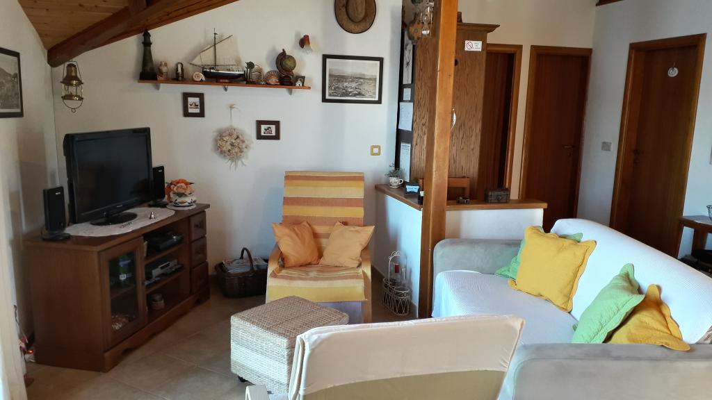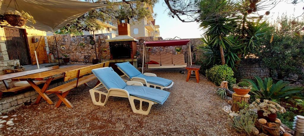 Przestronny apartament z dwiema sypialniami na 1. piętrze, z dużym salonem i balkonem z widokiem na morze (10 m) i całą zatokę. Znajduje się w samym centrum miasta, które jest oazą spokoju i rodzinnego relaksu. W pobliżu znajduje się restauracja, kawiarnia i sklep. Dla zapewnienia przyjemnego pobytu do dyspozycji Gości jest klimatyzacja, Wi-Fi i telewizja satelitarna. Przed apartamentem znajduje się betonowa plaża z krystalicznie czystym morzem, parasolami i leżakami, a plaża kamienista jest oddalona o 150 m.
