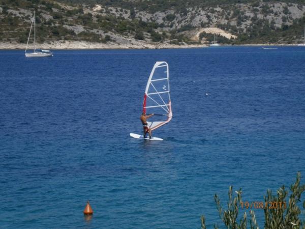 W ogrodzie znajduje się grill ze stołem jadalnym, położony w cieniu drzew, z leżakami i parasolami. Goście mogą uprawiać turystykę rowerową po zadbanych ścieżkach (posiadamy 2 rowery) oraz windsurfing. W pobliżu można wypożyczyć łodzie i skutery wodne. Na betonowej plaży przed apartamentem znajdują się również leżaki i parasole. Na terenie obiektu dostępny jest parking.