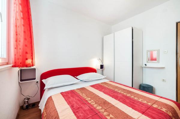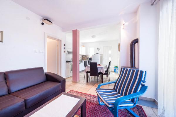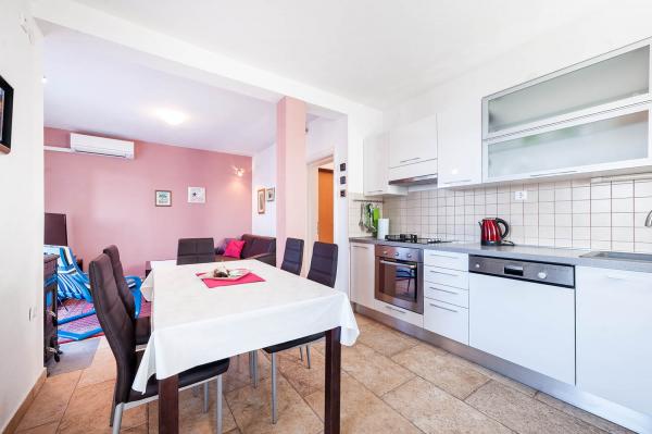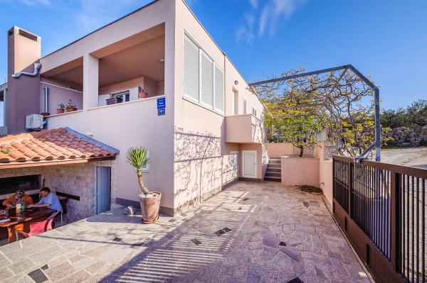 Mieszkanie jest w rzeczywistości dom z oddzielnym wejściem w pobliżu morza, nowoczesne w spokojnej części miasta. Posiada duży taras z widokiem na morze, dwie sypialnie z podwójnymi łóżkami, łazienka WC oraz dodatkowe WC. pralka. W salonie znajduje się rozkładana sofa dla 2 osób. W kuchni znajduje się zmywarka. Istnieją 3 miejsc parkingowych.
