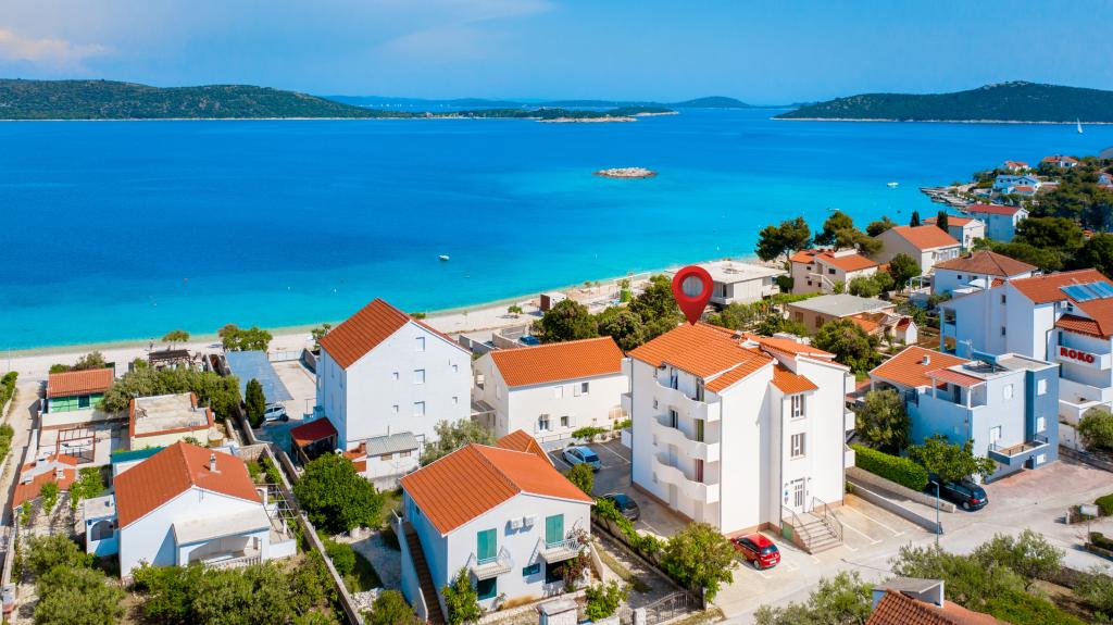 Wygodne iw pełni wyposażone apartamenty z widokiem na morze. Obiekt położony jest w cichej okolicy, 50m od morza i sklepów.