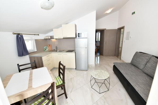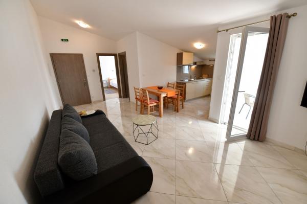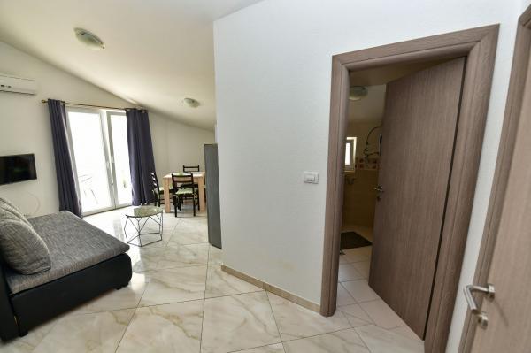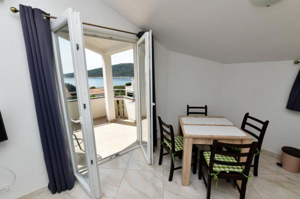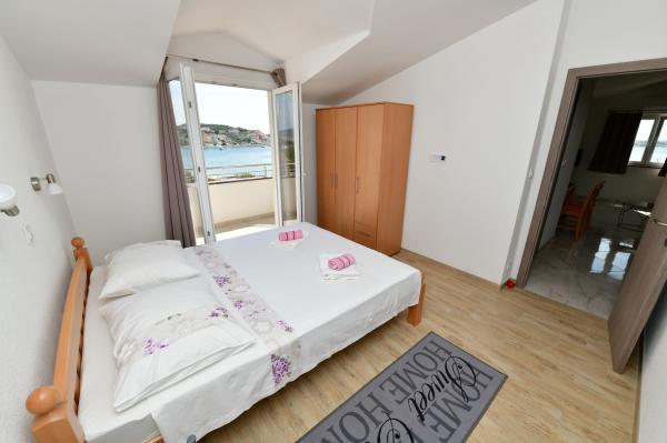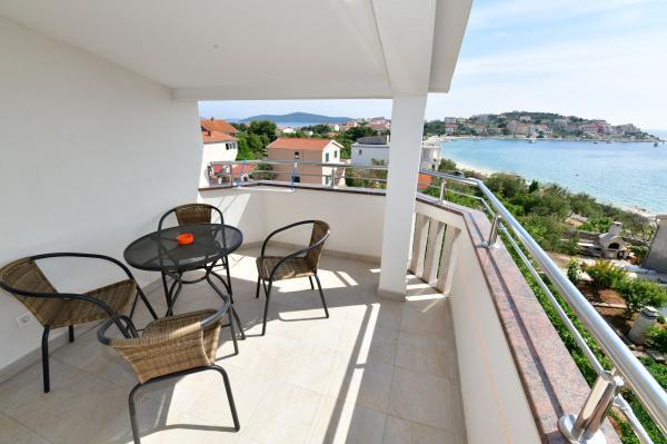 Apartamenty z widokiem na morze w Eryfii. Komfortowe i nowoczesne apartamenty znajdują się w Sevid, 60 metrów od morza. Apartamenty posiadają piękny widok na morze, klimatyzację, Wifi, telewizor LCD. Odwiedź nas i ciesz się spokojną częścią pięknej przyrody i krystalicznie czystego morza. Sevid to małe centrum turystyczne idealne na letnie wakacje dla rodzin z dziećmi i osób, które chcą uciec od tłumów i miejskiego zgiełku. Plaża jest żwirowa, kamienna i betonowa. Sklep i restauracja oddalone są od obiektu o 4 minuty spacerem. Odległości: 20 km od historycznego miasta Trogir, 40 km od Splitu i 40 km od Sibenika, 22 km od lotniska, 12 km od Marina Frapa, 50 km od Parku Narodowego Krka, itd...