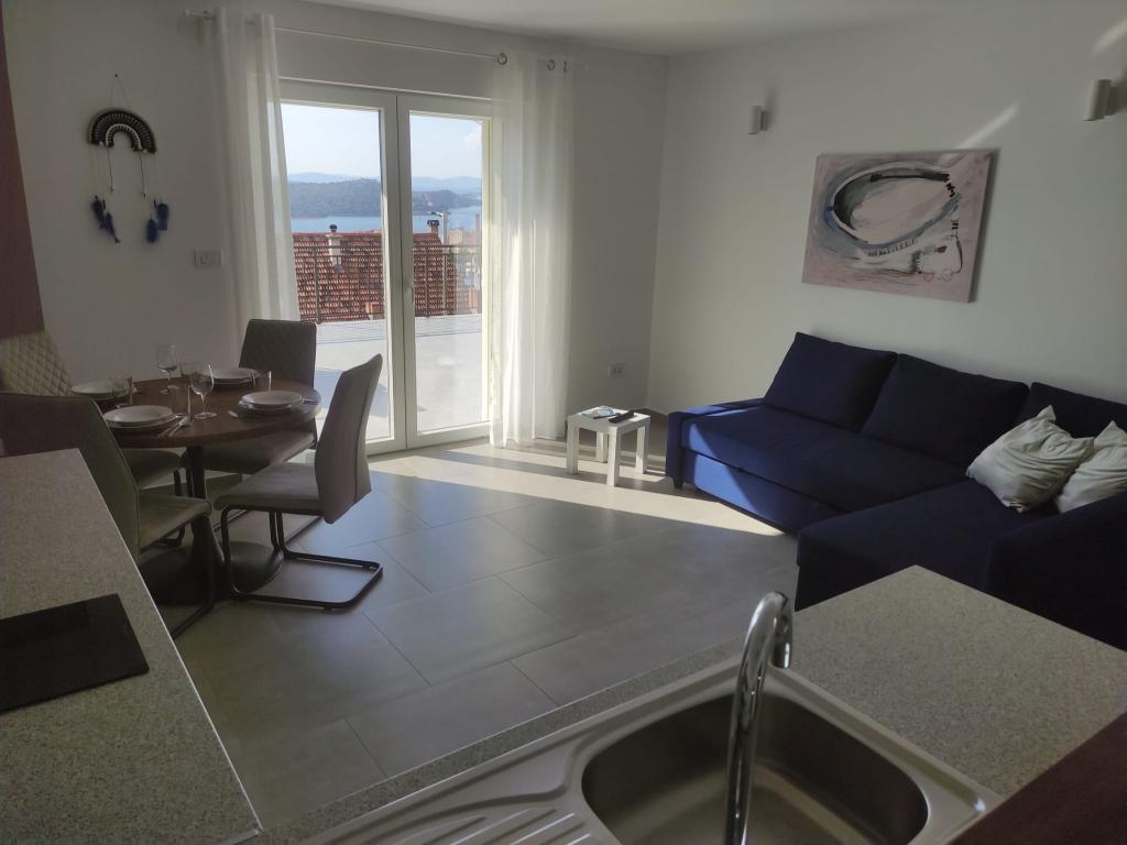 Apartament w spokojnej części miasta Šibenik Apartament znajduje się 10 minut spacerem od Starego Miasta w Šibeniku, w bezpośrednim sąsiedztwie wszystkich udogodnień miasta. Morze oddalone jest od obiektu o 500 metrów, a do najbliższych plaż można dojechać w zaledwie 5 minut. Mieszkanie jest w pełni umeblowane i wyposażone we wszystkie udogodnienia oraz ma dostęp do tarasu z pięknym widokiem na zatokę Szybenik i miasto.